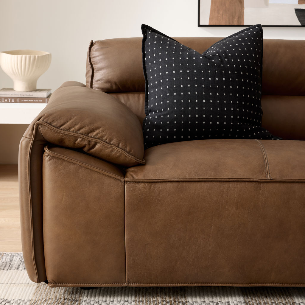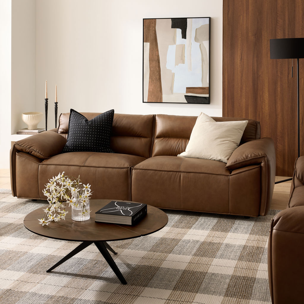 Its unique folded-cushion-style armrests are a new trend, combined with super-soft, luxurious semi-aniline leather upholstery.