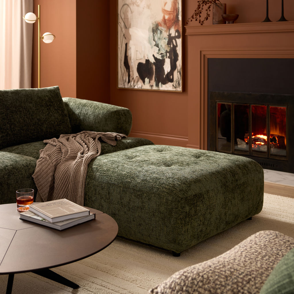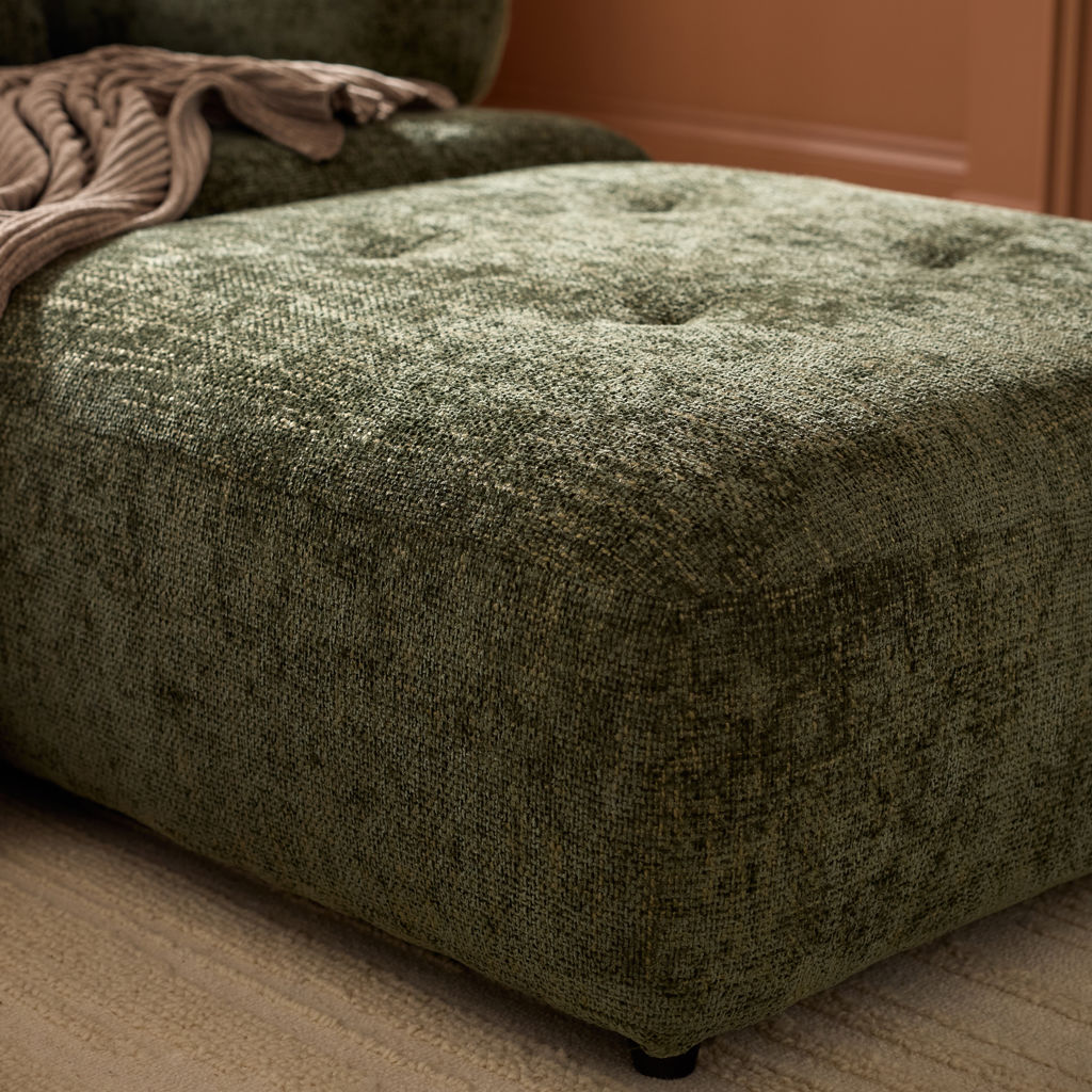 The textured fabric from the Culla collection, in sophisticated shades of green, blends seamlessly with any interior décor. Built on discreet legs, its sturdy construction ensures lasting durability and stability, while its generous size offers exceptional versatility.