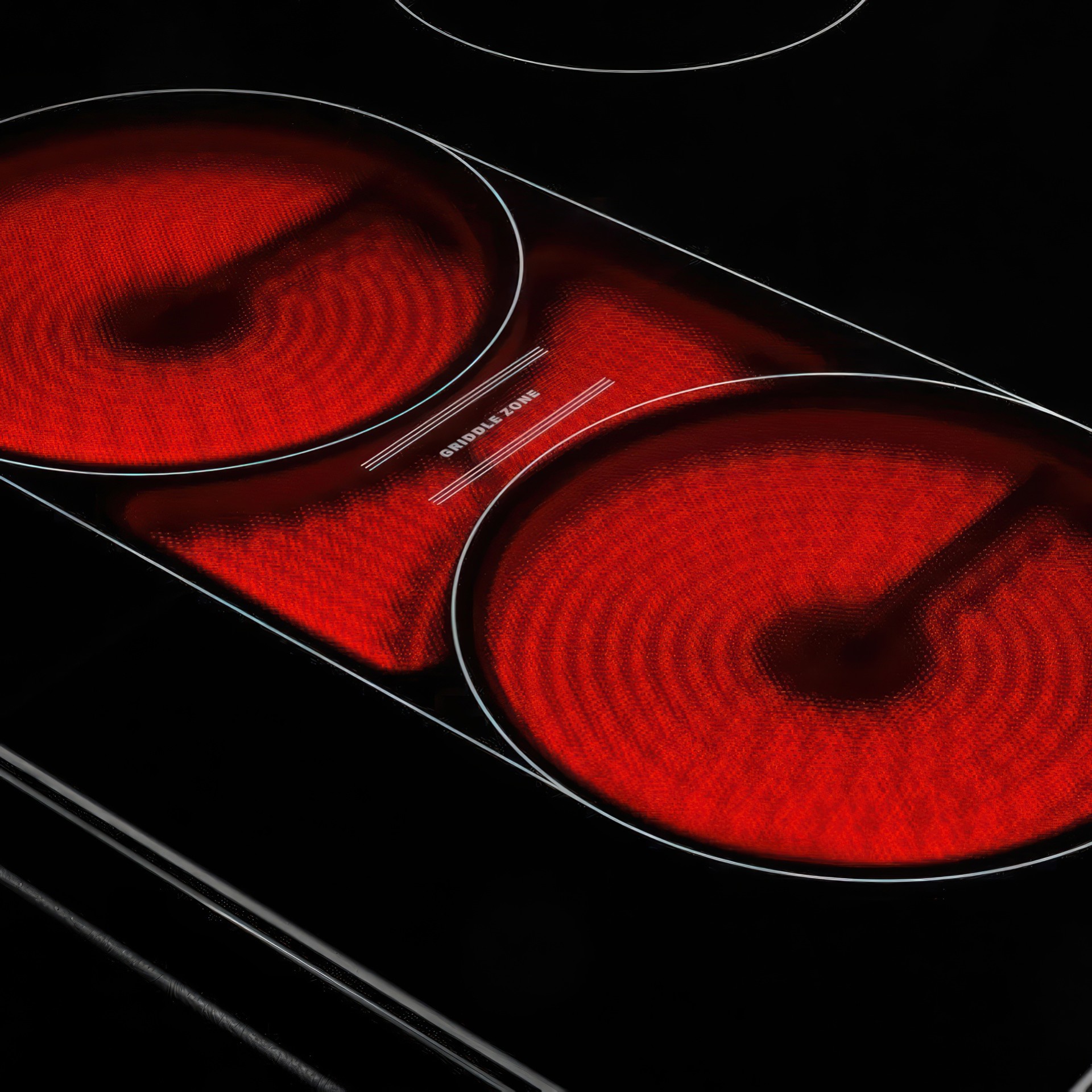 The cooktop is impact-resistant, and heavy-duty door hinges combine with high-quality ball-bearing drawer slides to ensure that this range lasts for years to come.