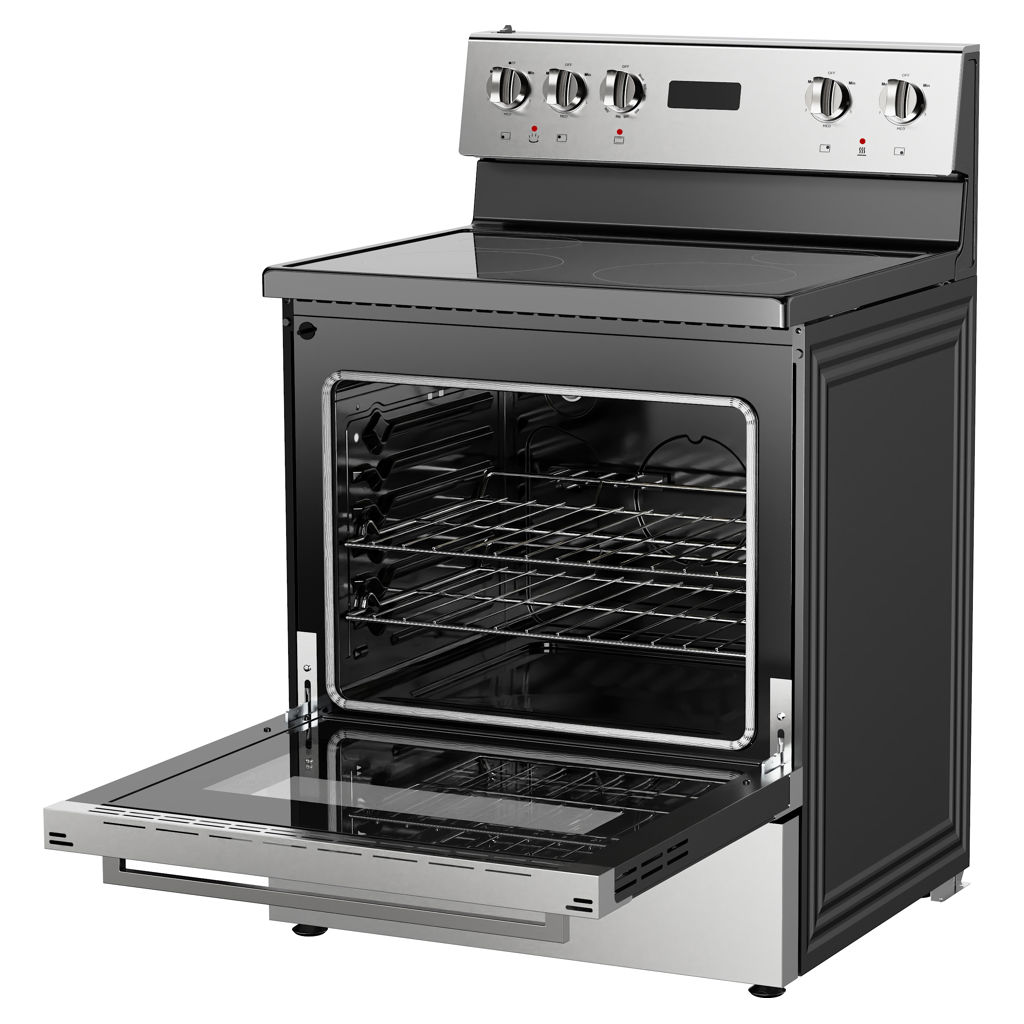 Its four versatile smooth-top burners provide generous cooking space for all your favorite meals, while the LED clock and timer offer precise control for baking and cooking needs.