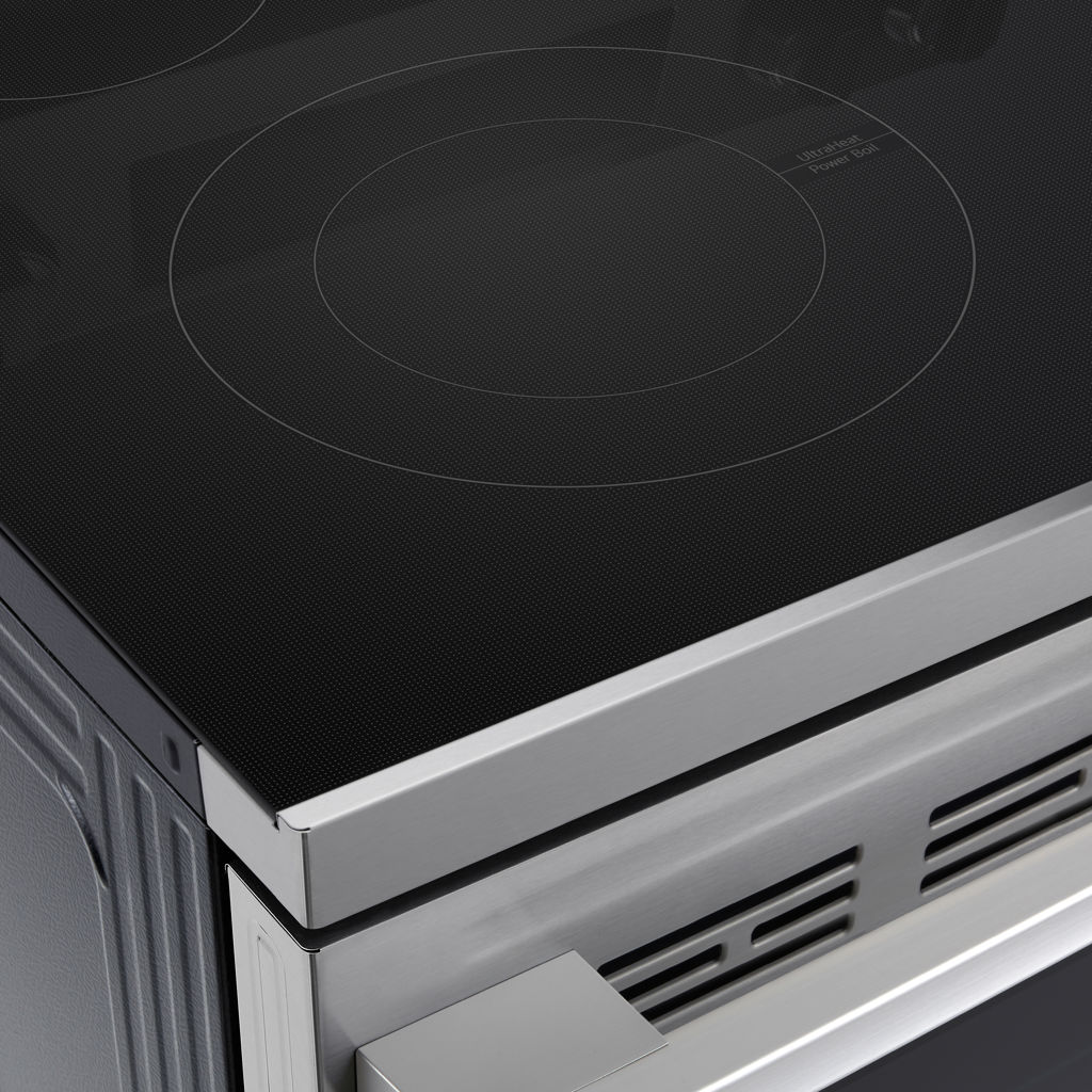 Enjoy a smoother cooking experience with the edge-to-edge ceramic glass cooktop. Designed to combine style and functionality, it offers a sleek, modern look that integrates seamlessly with standard-height countertops for a built-in appearance.