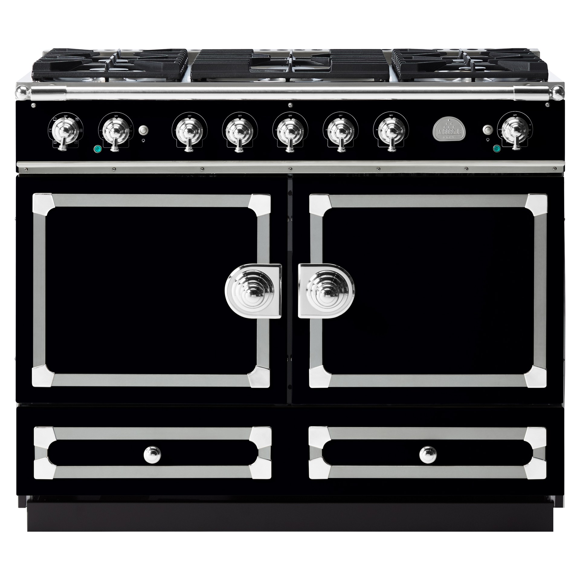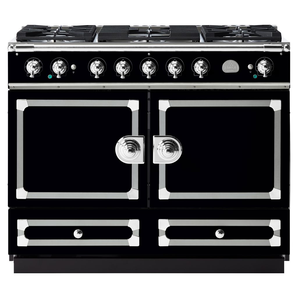 The original CornuFé range, this 43” range is your first La Cornue love. The CornuFé 110 includes two electric convection ovens, one of which is a seven-mode multifunction oven, five powerful gas burners and a large storage drawer.