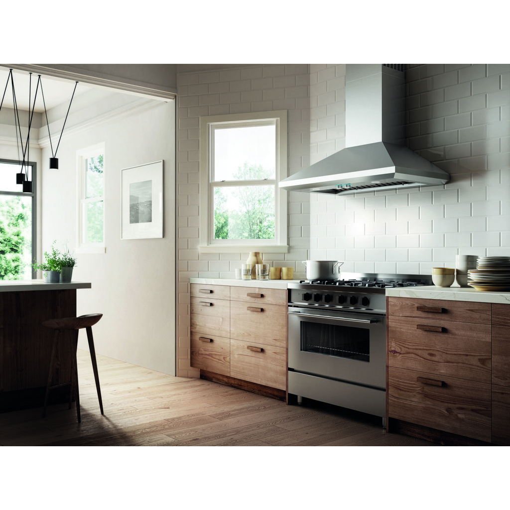 With Leone's HUSH system, you don't need earplugs because it lets you talk and have fun even when you're cooking for a regiment. Available in 30", 36" and 42" widths, Leone offers hidden backlit buttons that control the 4-speed fan and LED lighting.