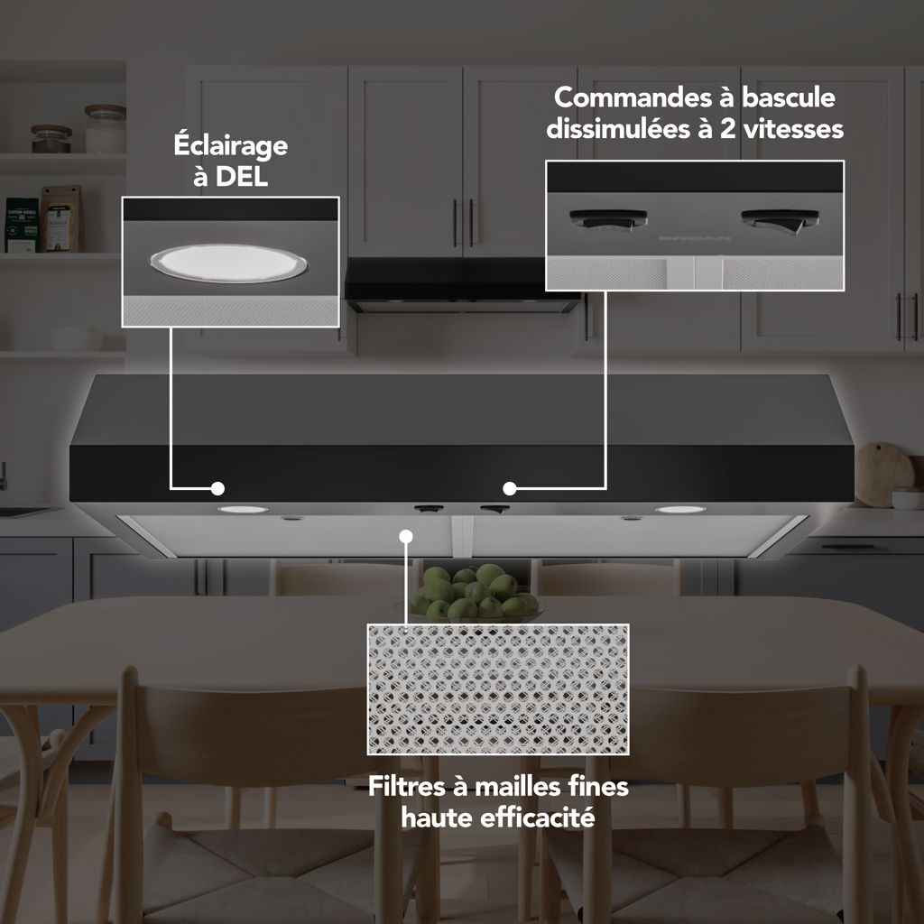 The 1-Level LED lighting and a 2-Speed hidden rocker controls make cooking a breeze. At Broan-NuTone we believe that better quality of air means better quality of life.