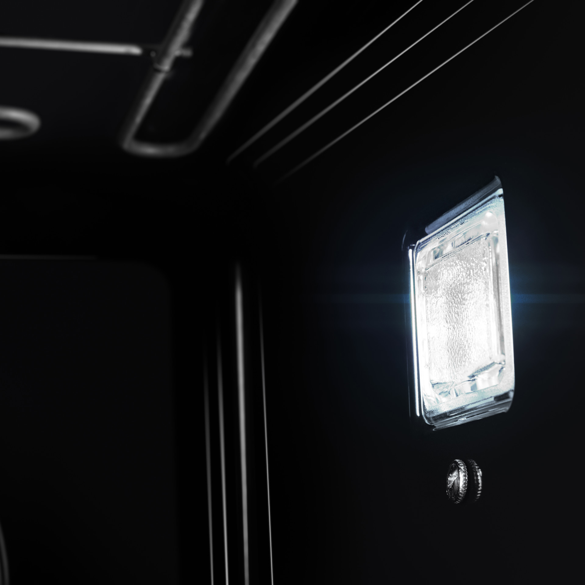 • Beyond the dark glass, cinematic lighting illuminates smooth containers, flat rods and an eye-catching jet-black interior.