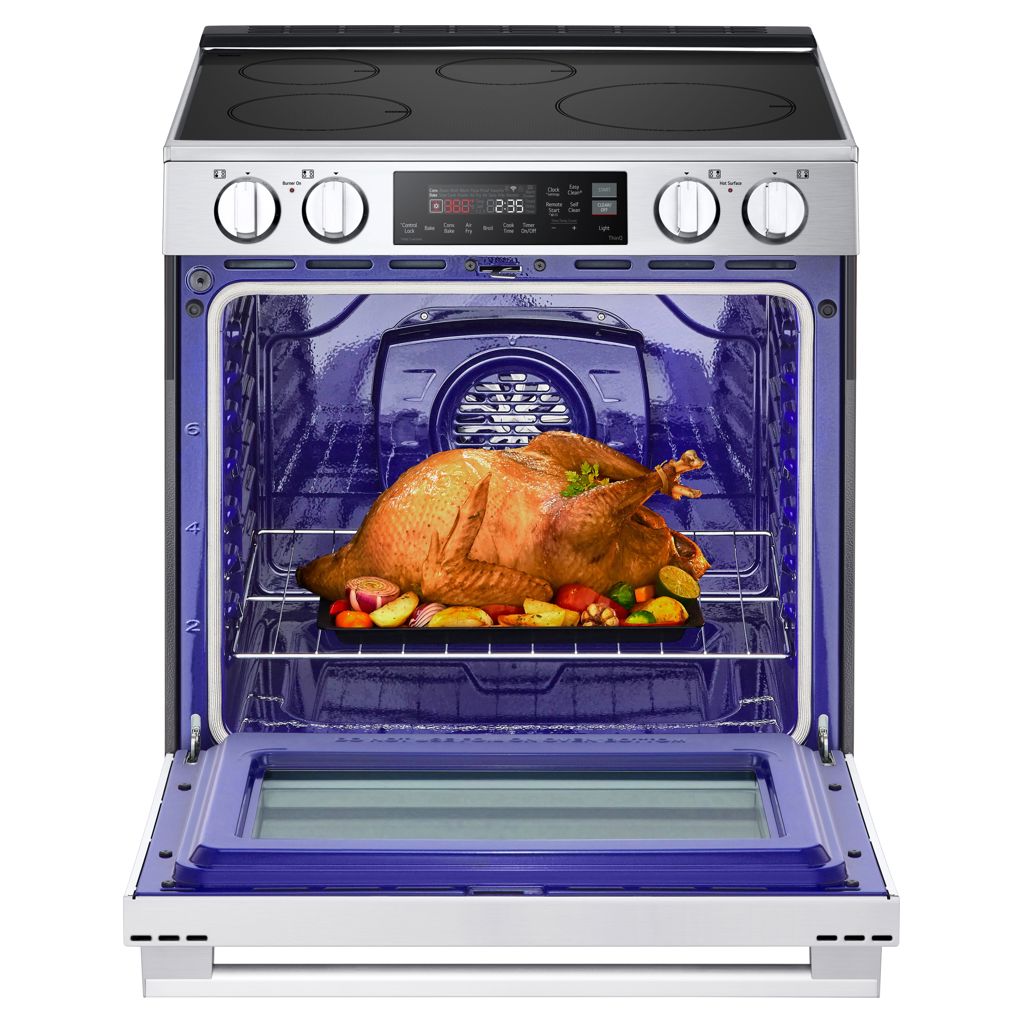 Use the ThinQ® app to start the oven, set timers and check on your appliance wherever you are.³ Simply speak to control your oven with Alexa or Google Assistant. What's more, thanks to scan-to-cook technology and LG Smart Cooking Partners, you can send cooking instructions directly to your oven by simply scanning the barcode on ready-to-eat packaging..., or by selecting one of thousands of SideChef recipes.