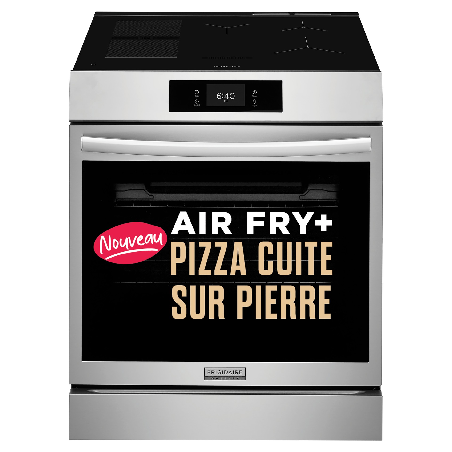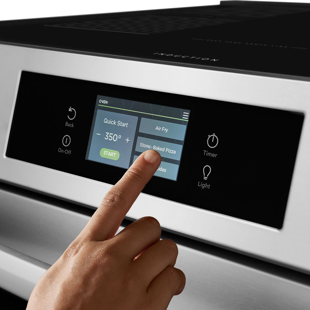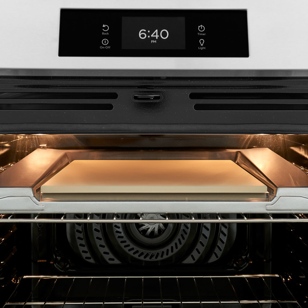 This 30-inch Frigidaire induction range in stainless steel transforms your cooking experience with its unique built-in stone-bake function, perfect for crafting authentic pizzas at home.