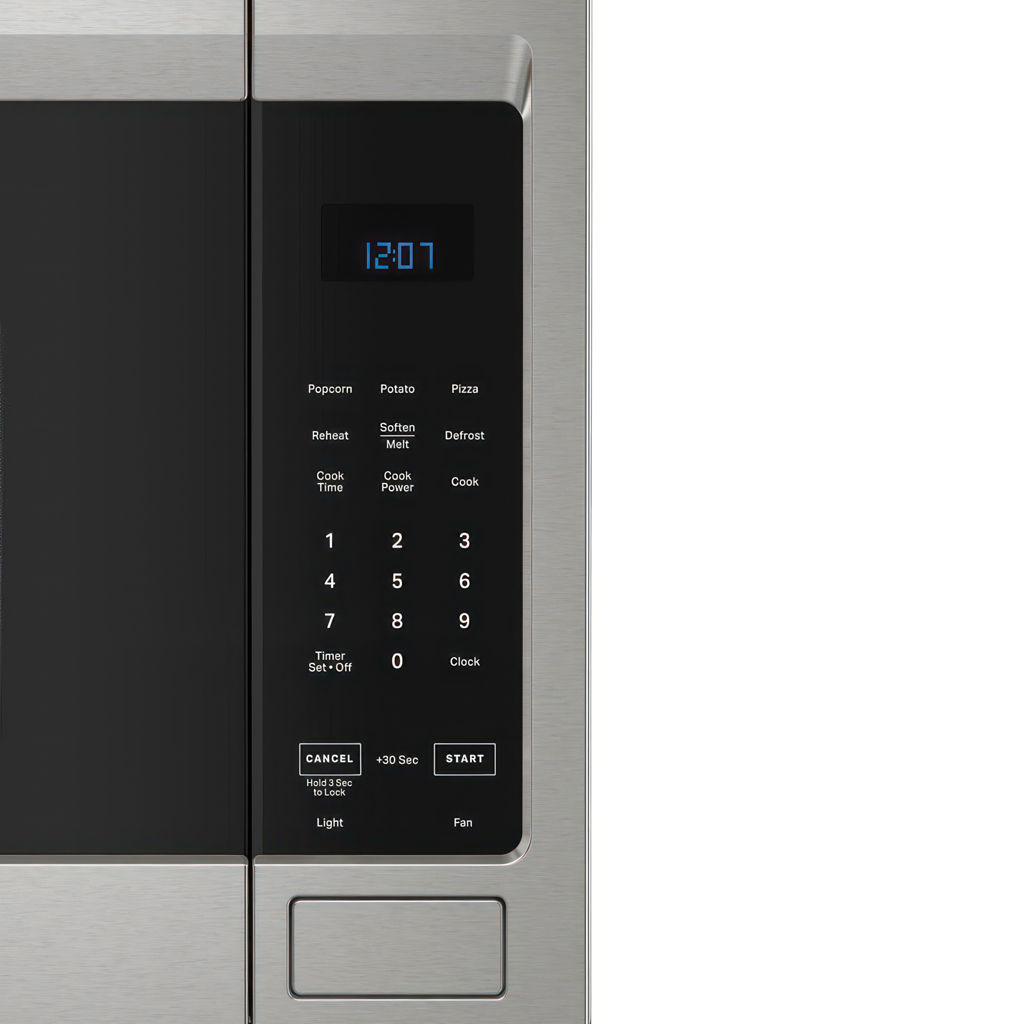 This fingerprint-resistant stainless steel microwave maintains a sleek look, while the multi-speed extraction fan helps eliminate smoke and odors while you cook.