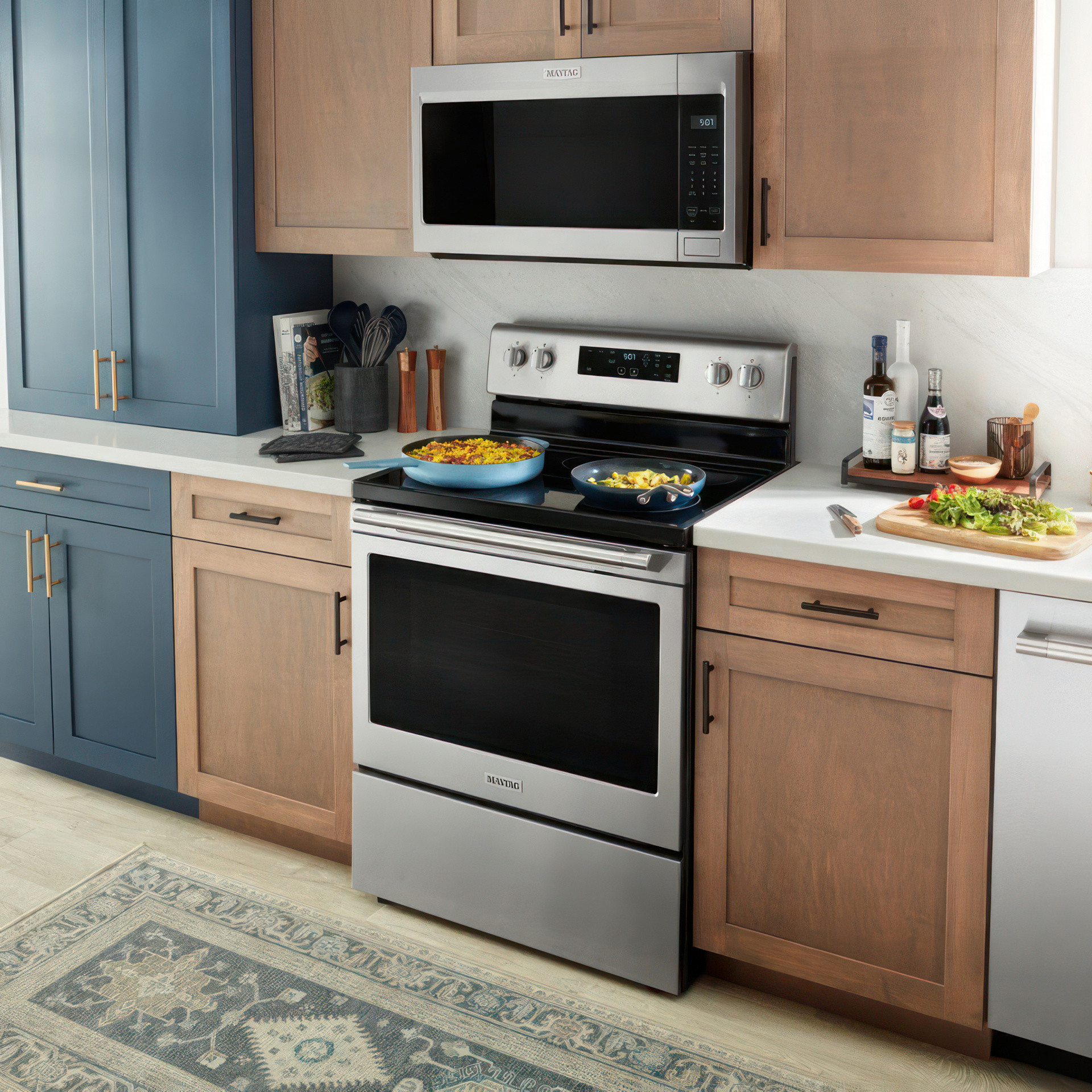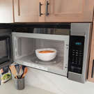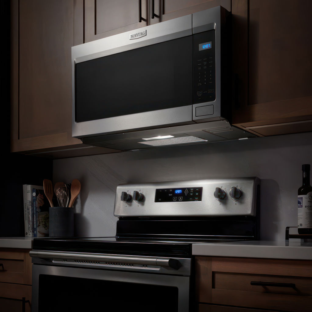 This easy-to-clean microwave from Maytag helps eliminate kitchen messes.