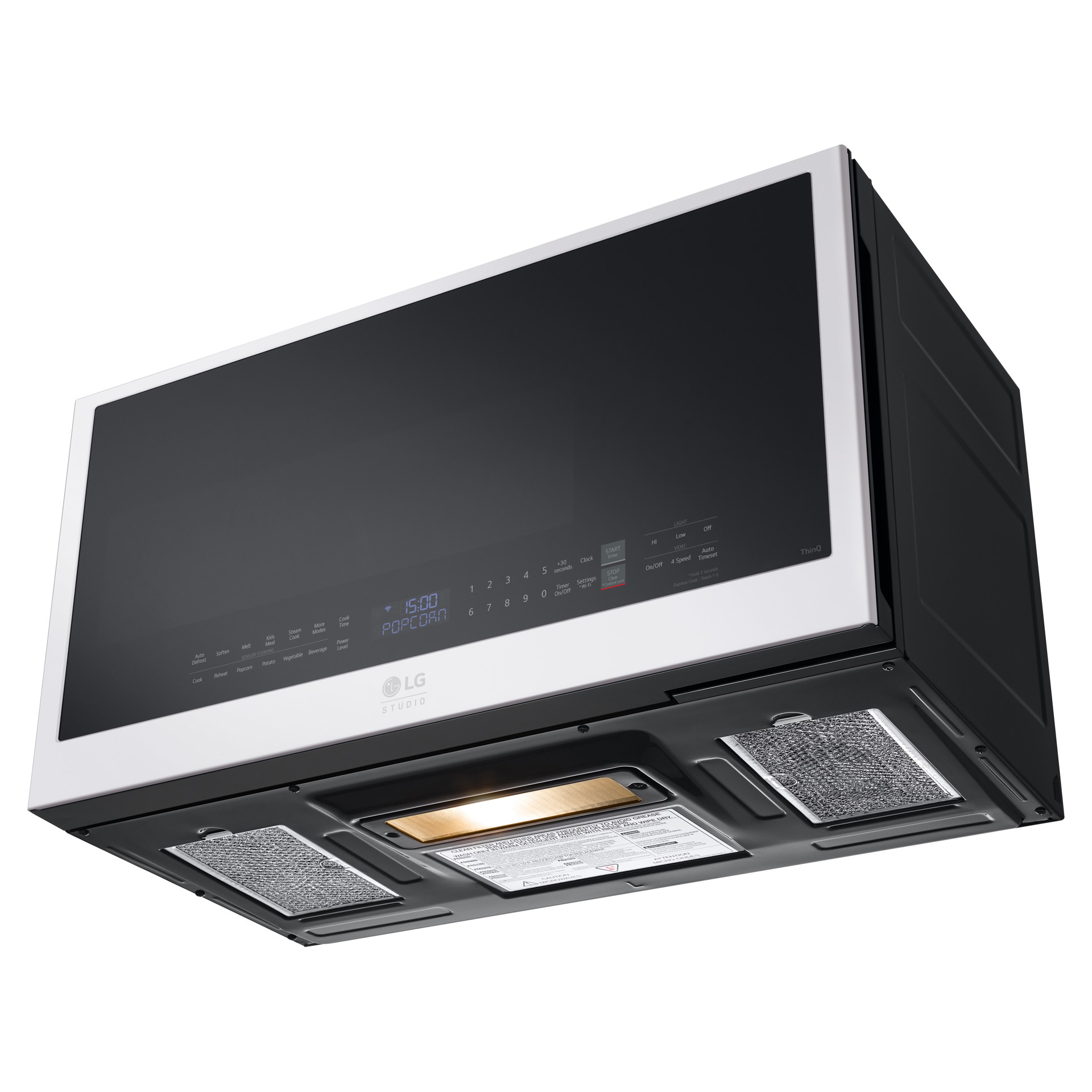 Connect your microwave and LG smart range or cooktop using the ThinQ® app to enjoy the convenience of automatic pairing. The microwave’s ventilation and lighting turn on and off automatically when your cooktop is turned on or off for a seamless cooking experience.