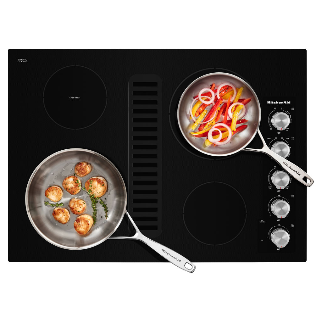 30" Electric Downdraft Cooktop With 4 Elements, 300 CFM KitchenAid KCED600GBL