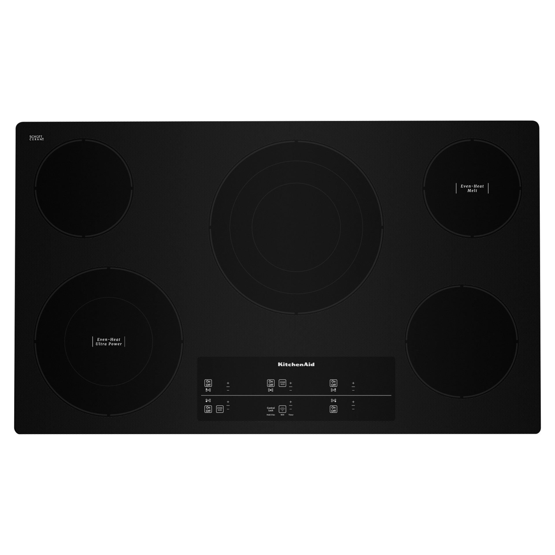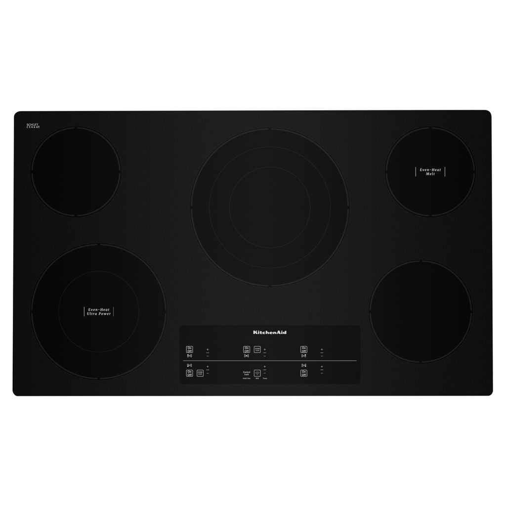 This 36" electric cooktop combines the lasting beauty of a black glass surface with the performance of a 10'' Even-Heat™ Ultra Power™ Element with Simmer Setting, two 6'' Even-Heat™ Elements with Melt Setting, and 12''/9''/6'' Triple-Ring Round Element that maximizes your flexibility with three distinct rings to allow for element selection based on cookware size.