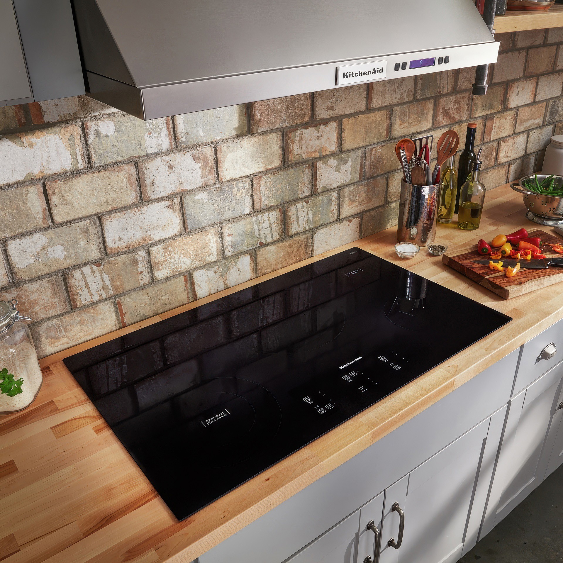 Integrate seamlessly into the surface and include a slider for heat-level selection.
