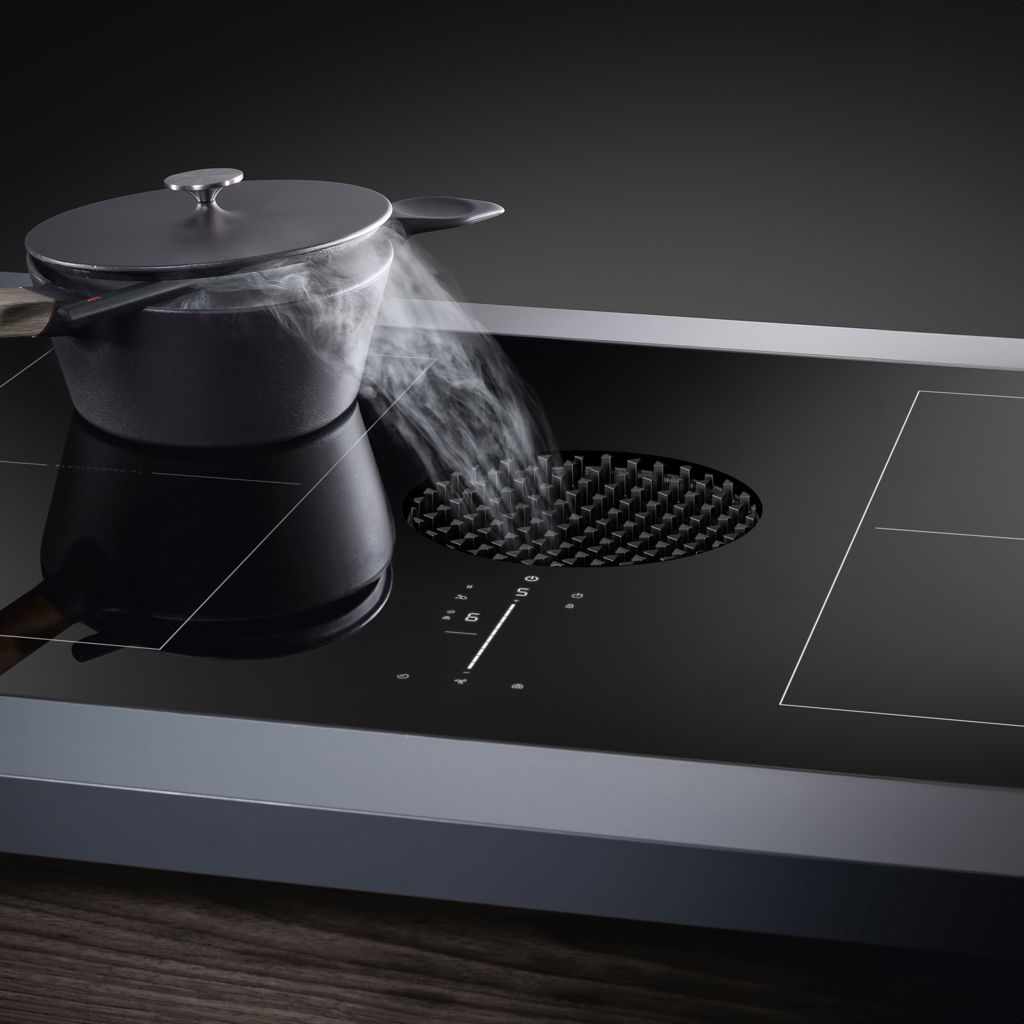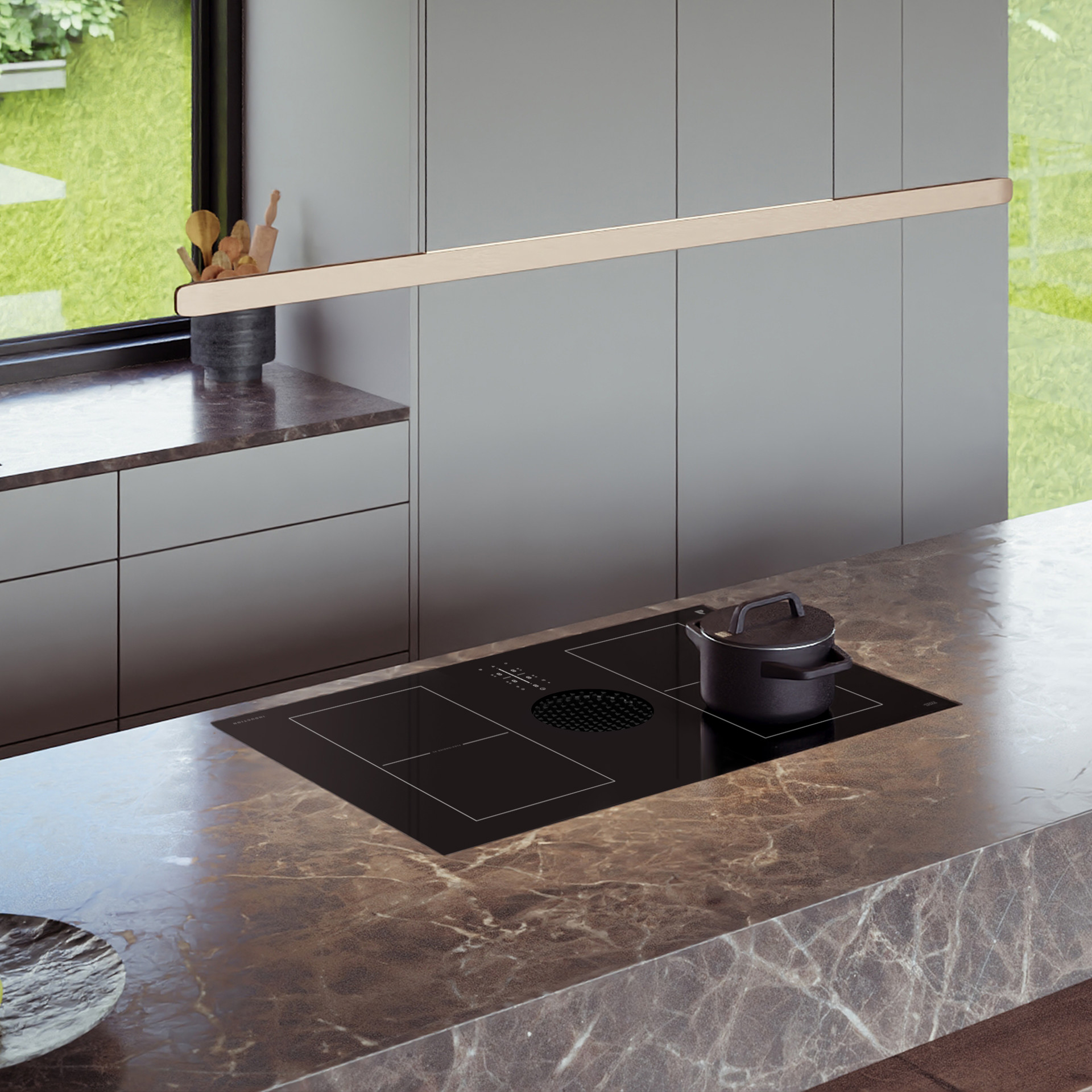 Discover new possibilities in kitchen design with our downdraft cooktop. Its slim profile eliminates the need for bulky range hoods and frees you from cabinetry constraints making even floating islands possible. True design freedom awaits.