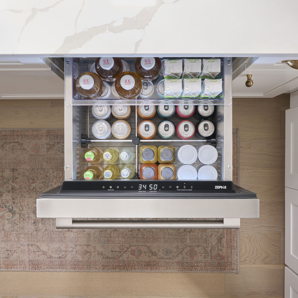 From kids’ snacks to fresh produce to party-ready food and drinks, these elegant dual-zone undercounter refrigerator drawers add extra storage exactly where you need it.