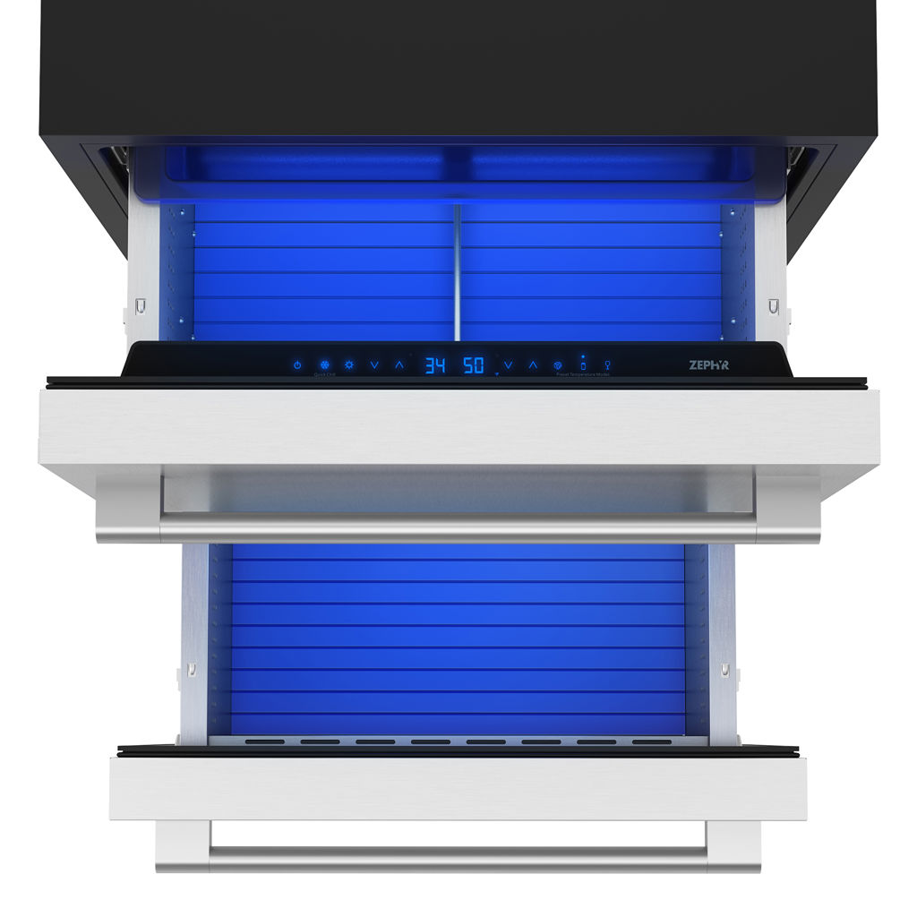 24" Built-In 2-Drawer Refrigerator – Dual Zone Zephyr PRRD24C2AS