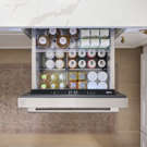 For maximum convenience, the drawers are full-extension and soft-close, with adjustable dividers, a transparent tray, and a silicone mat to keep items from sliding. A sleek 304 stainless steel exterior completes the professional look.