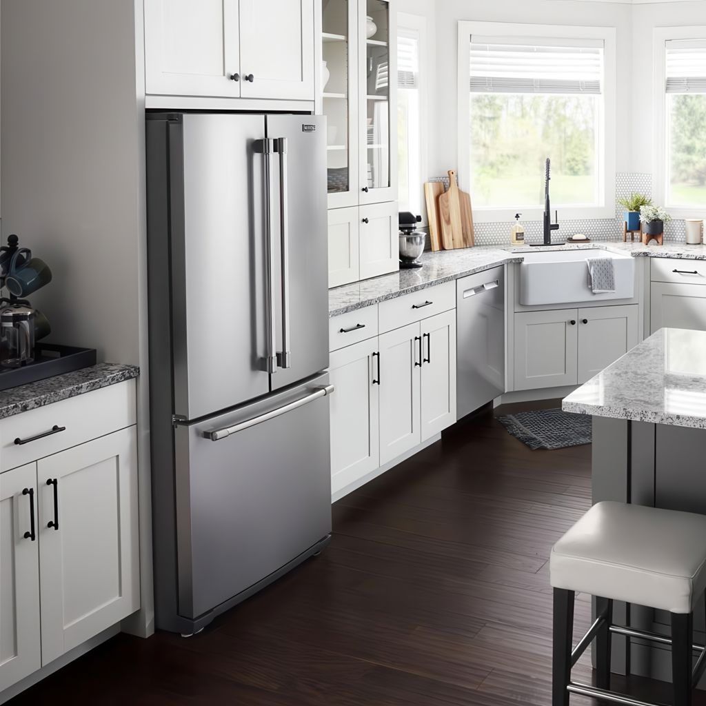 Provides the look and functionality of a French-door refrigerator in the narrow 30" space once limited to accommodate a top-freezer refrigerator.