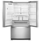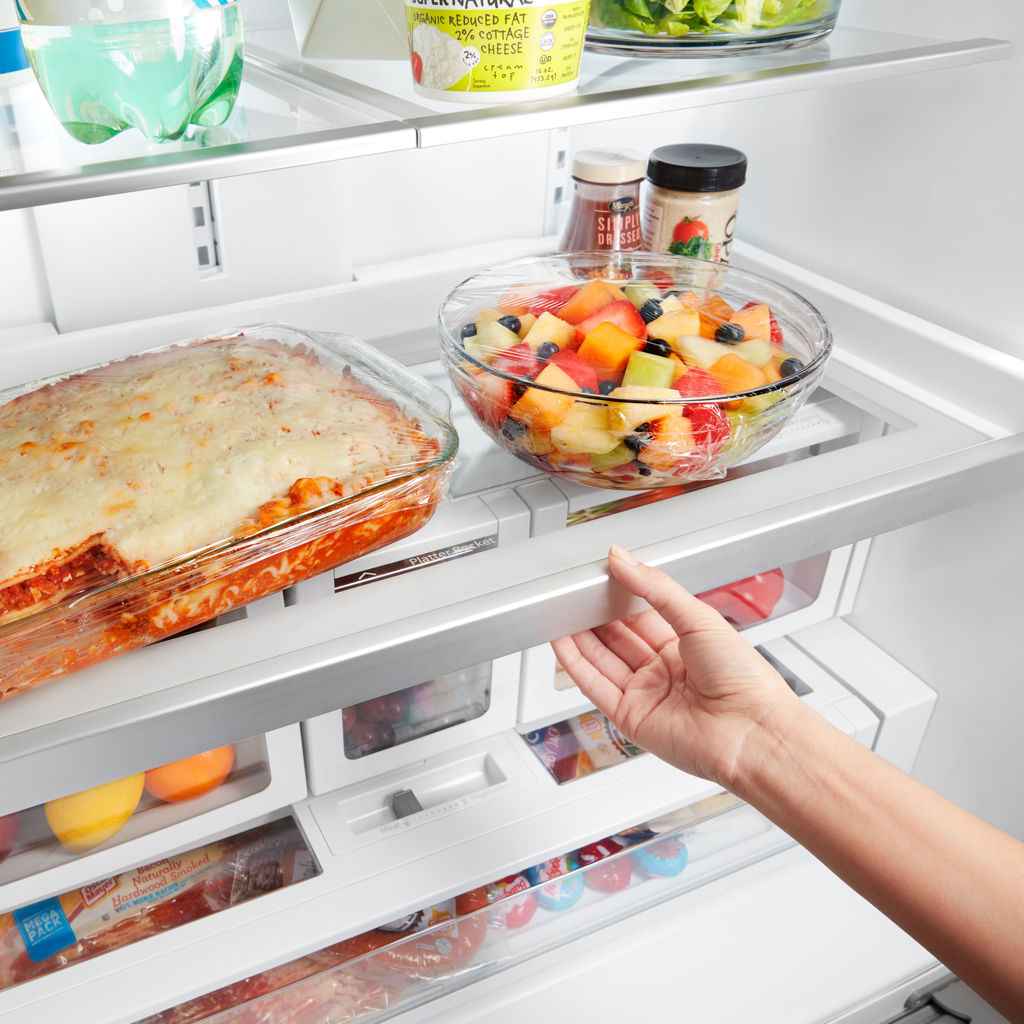 Enjoy extra space for the items you use most often, thanks to specialized storage compartments in this French door refrigerator with a large freezer. Features like the tray shelf, in-door ice maker, LED lighting, and deli drawer make it easy to store and find your family’s favorite foods.