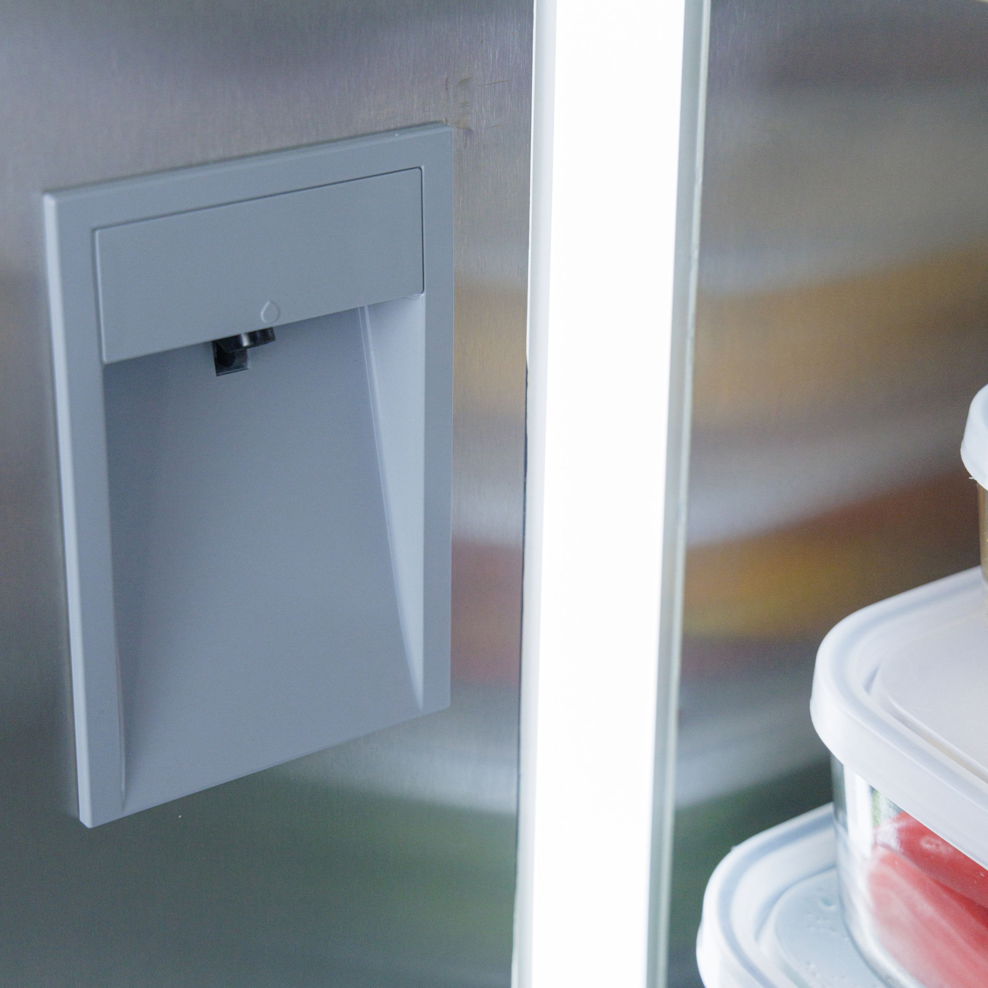 Internal water dispenser with UltraClarityPro water filter removes 99% of impurities for easy water access.