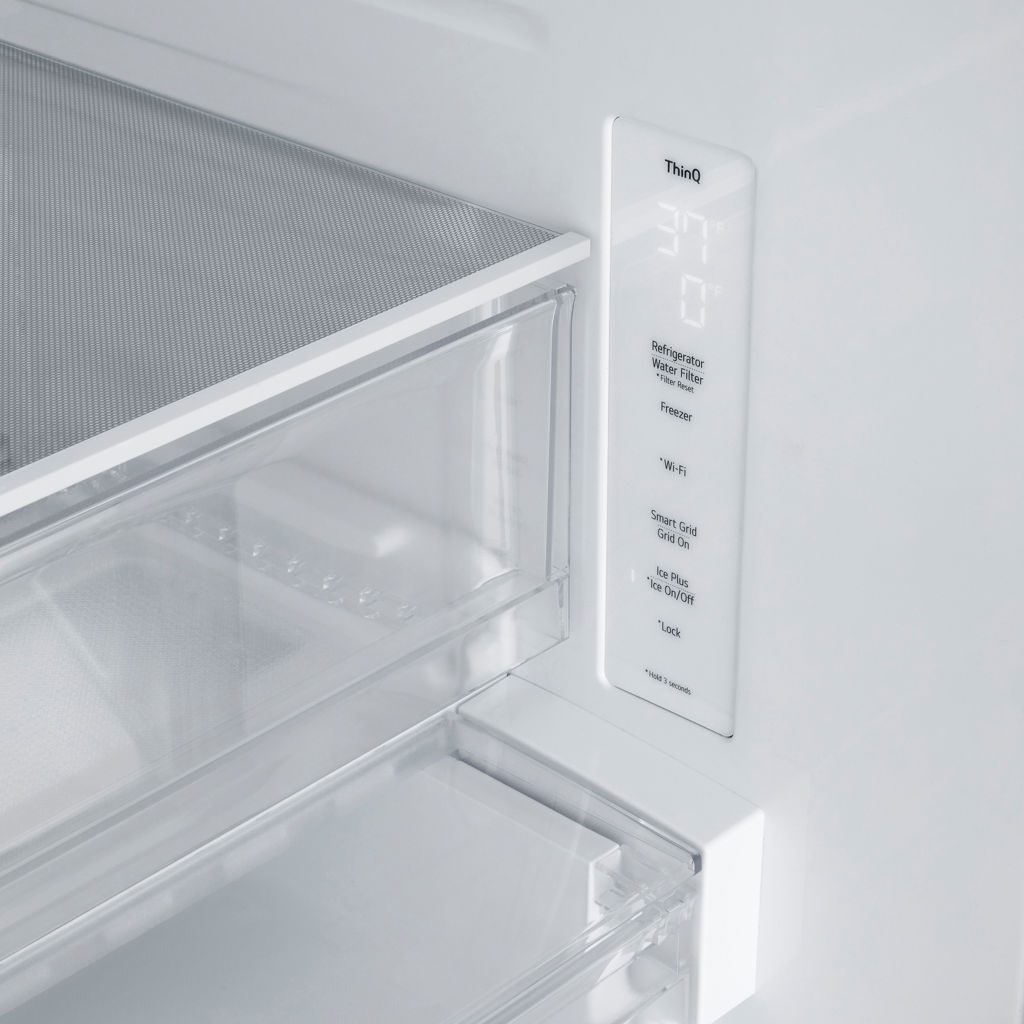 The Smart Cooling Plus system, powered by LG's linear compression motor, maintains optimal refrigerator humidity and temperature levels for fresher food for longer. A fresh air filter eliminates odours, and the multiple airflow design keeps food fresh no matter how it's arranged.