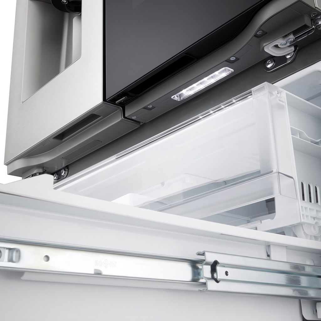 Only LG brings together three technologies that extend the life of food: linear cooling maintains a temperature difference of ±1°F, intelligent cooling controls cooling via sensors and vents, and the Door Cooling+ solution sends cool air throughout the fridge.