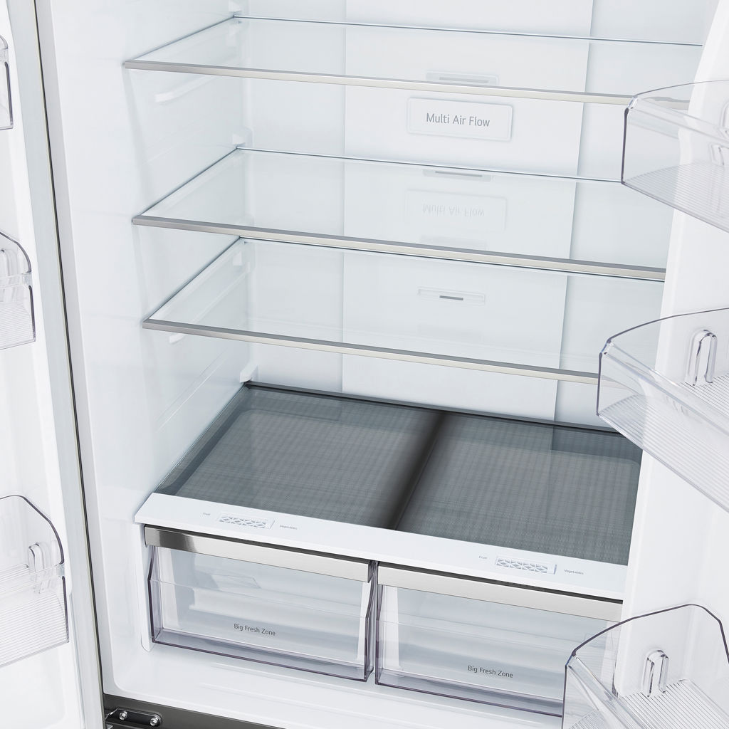With its three-door configuration, enjoy effortless access to everyday items. Thoughtfully designed compartments make organization simple, while the bottom freezer drawer keeps frozen foods neatly stored and within reach.