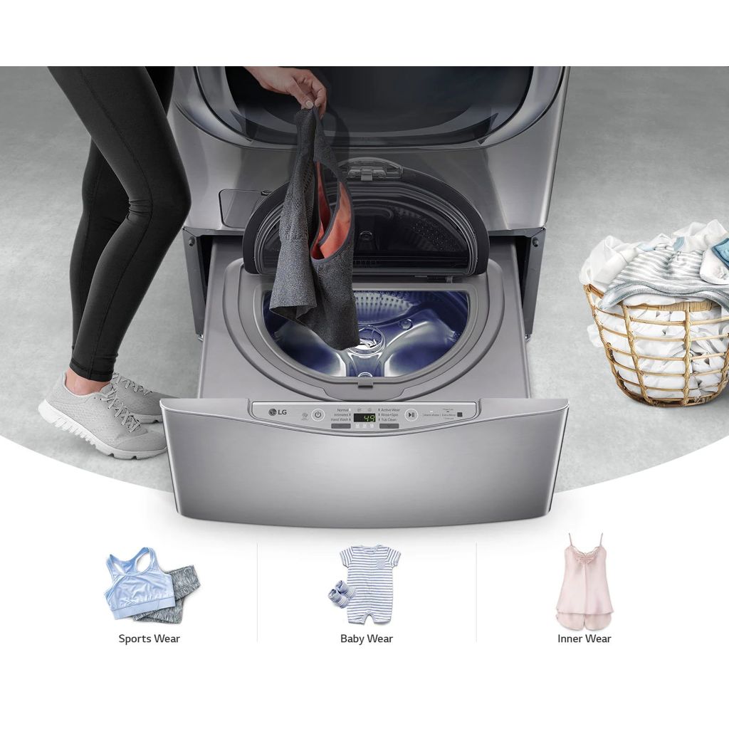 The LG pedestal washer is the perfect size for hand washing or delicate items. No need to wait, you can run small loads as often as you like to keep laundry from piling up.