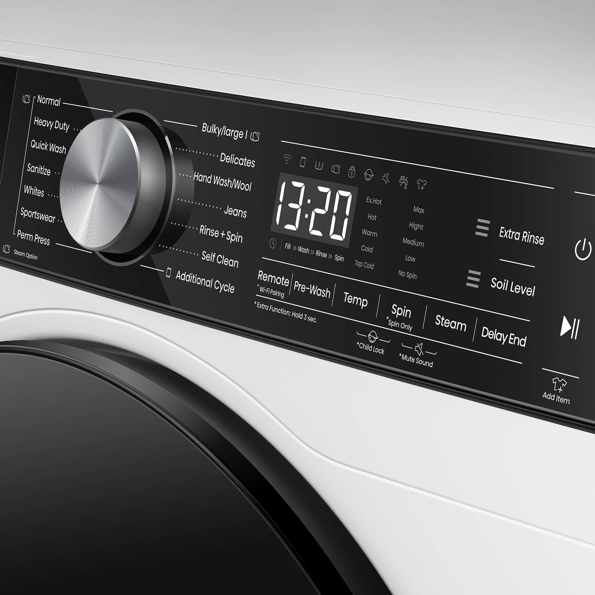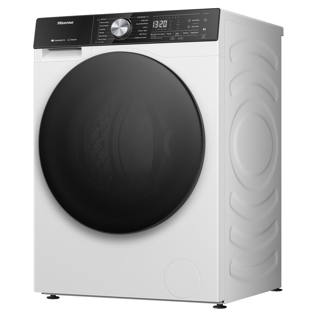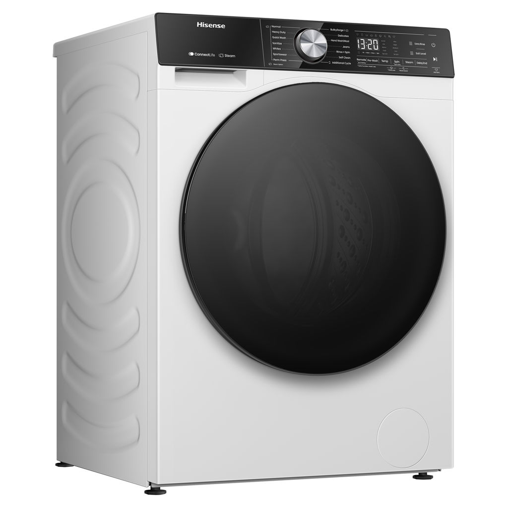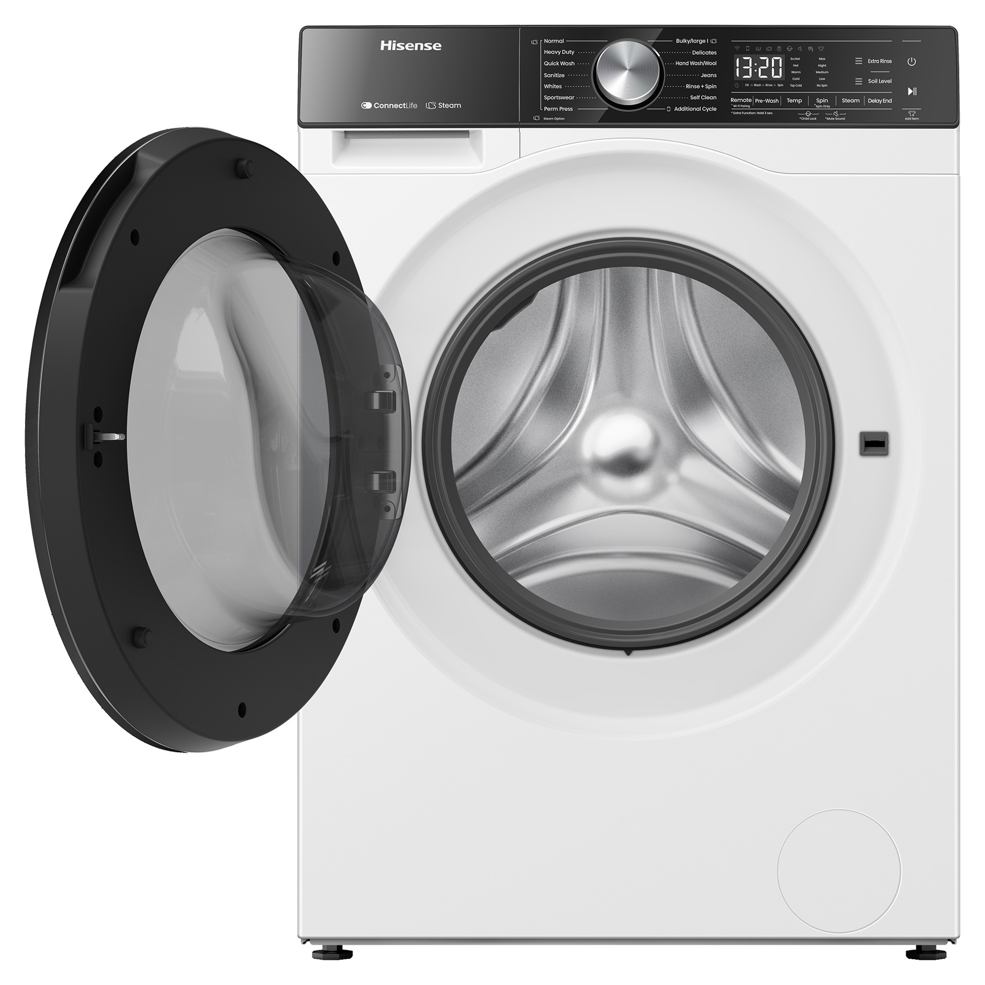 The 24-inch Hisense front-load washer, with a 3.1 cu. ft. capacity and 1400 RPM spin speed, combines advanced technology with user focused design for exceptional cleaning. The steam function ensures hygienic washing, while the 20-minute Quick Wash cycle delivers time-saving efficiency without compromising fabric care. The ConnectLife app includes Smart Assist, which selects the right settings based on fabric type, color, and soil level, perfectly combining temperature, cycle duration, and water usage. Smart Link synchronizes the washer and Hisense dryer to automatically select the ideal drying cycle. With multiple fabric-specific prewash options and customizable settings, this washer offers generous capacity and versatile functionality, perfect for busy households