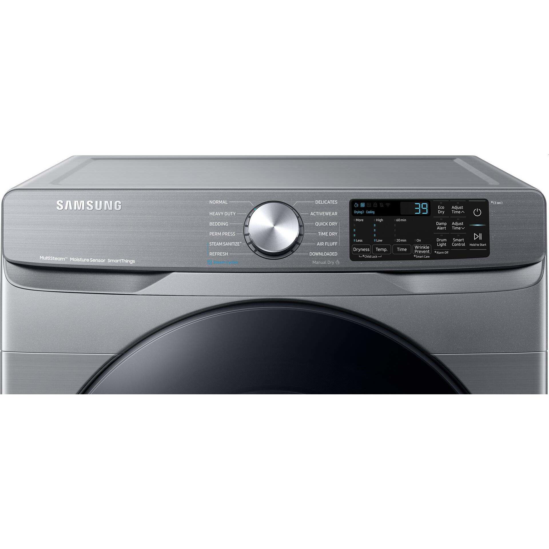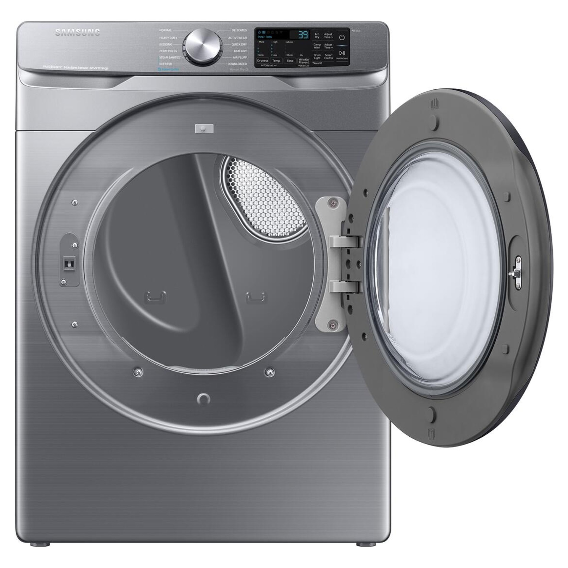 Intelligent 7.5 cu. ft. capacity electric dryer, Wi-Fi enabled, steam cycle, Wi-Fi connection, scratch-resistant glass door, drum lighting, lint filter indicator, Steam Sanitize+.