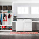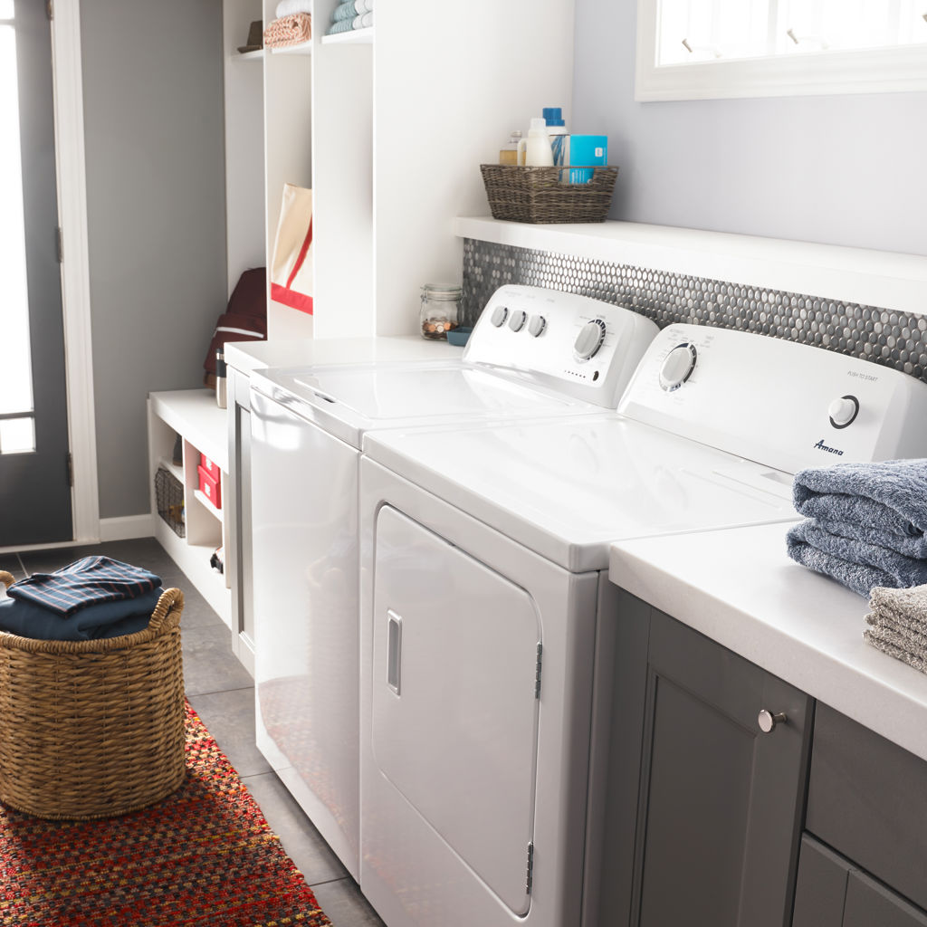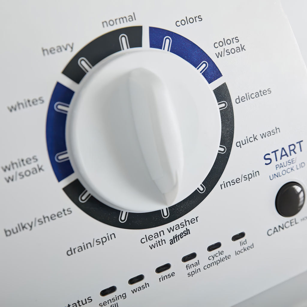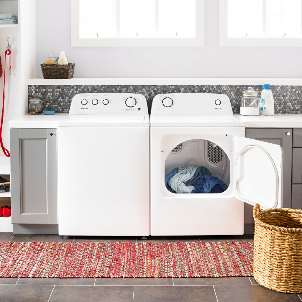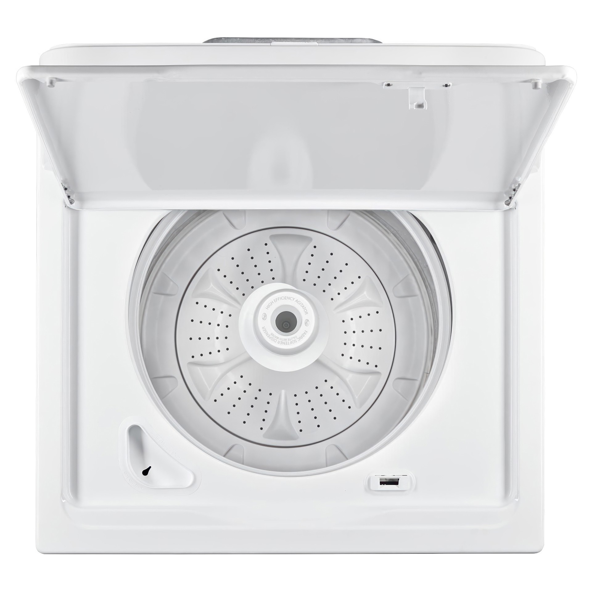 This Amana® 4 cu. ft. top-loading washer provides fast, even cleaning thanks to a dual-action agitator, which agitates clothes in the bottom of the wash basket.