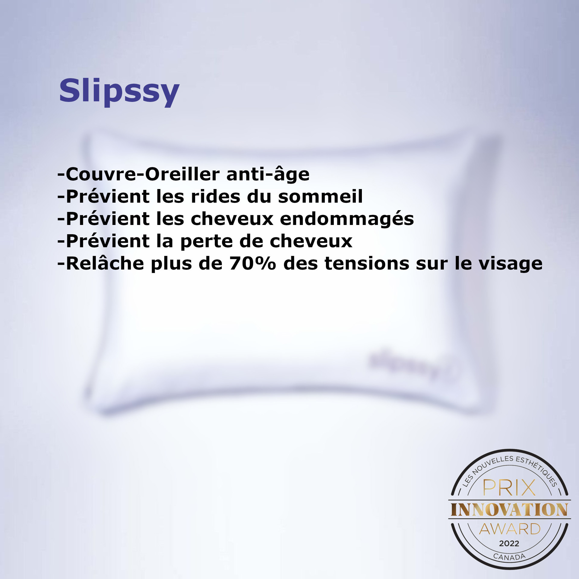 Introducing Slipssy, the unique anti-aging pillow cover technology that prevents sleep wrinkles and hair loss by reducing friction at the source. Releasing over 70% of tension on the face, Slipssy will give you a unique and soothing night's sleep.