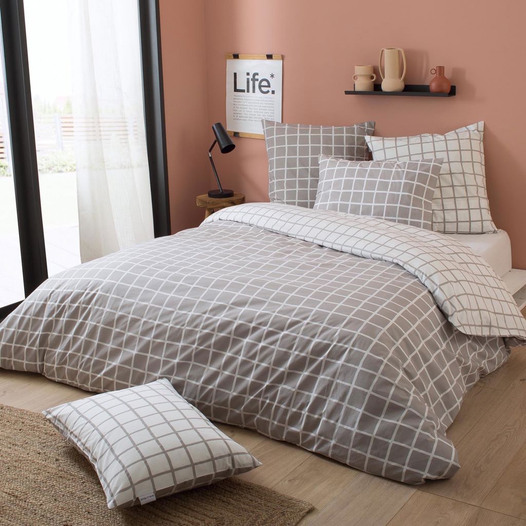 Duvet cover and pillow sham set in 200 thread count 100% natural cotton percale.