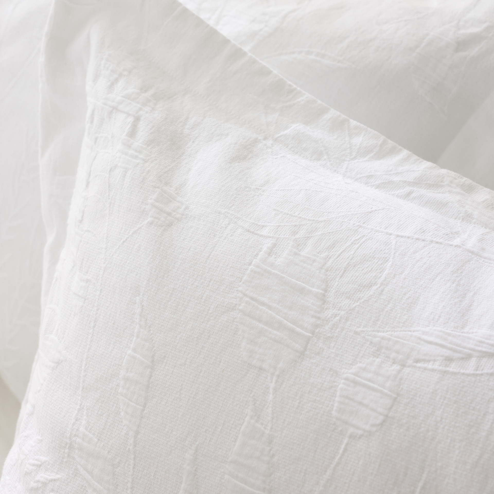 White bedding blends easily with any décor, offering versatility and brightness. The textured leaf pattern adds a touch of contemporary charm while creating a focal point of sophistication.