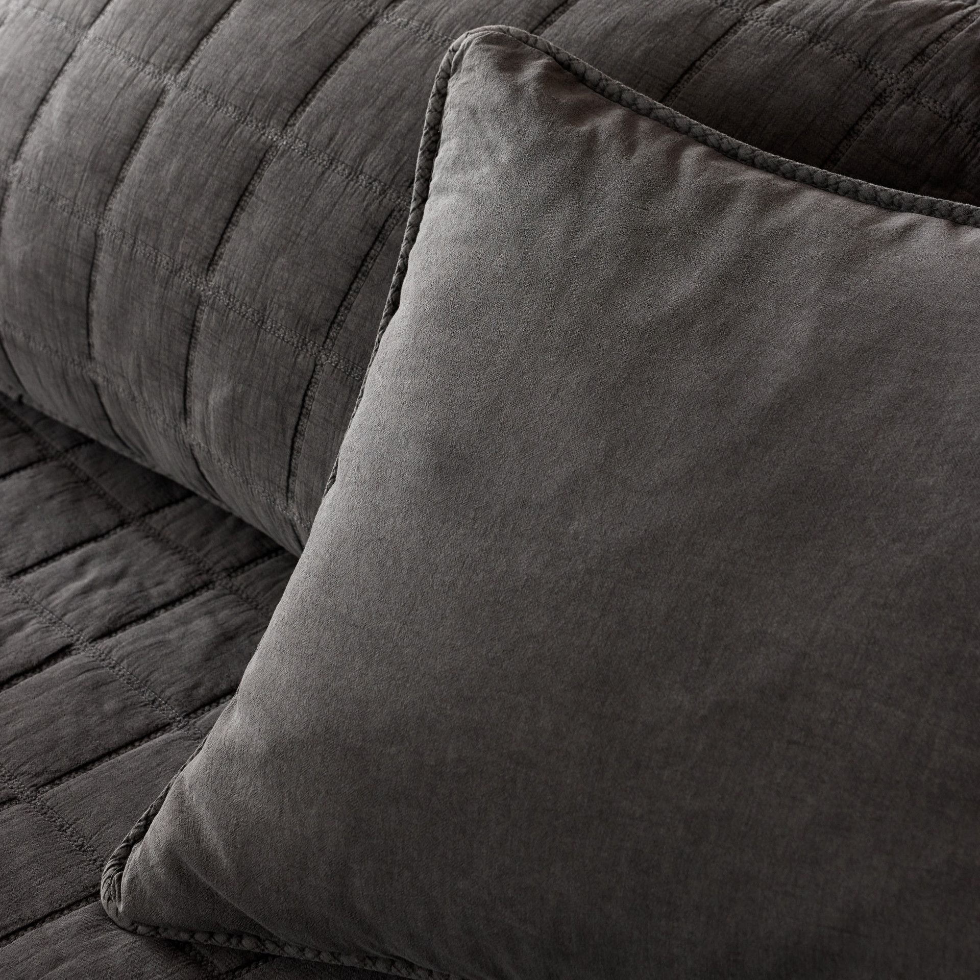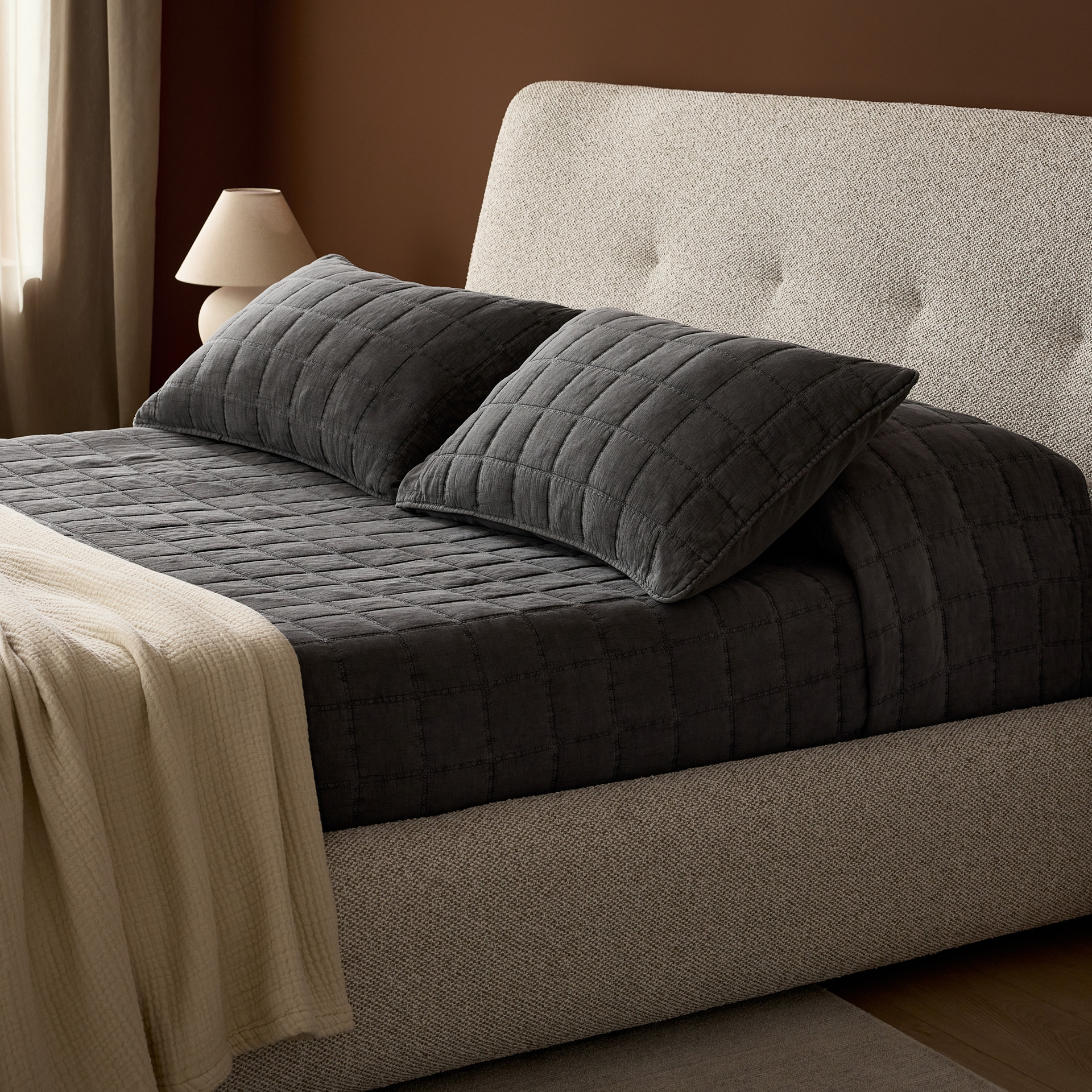 Enjoy softness for the body, the eyes, and the mind with this charcoal quilt featuring a diamond-stitched pattern.