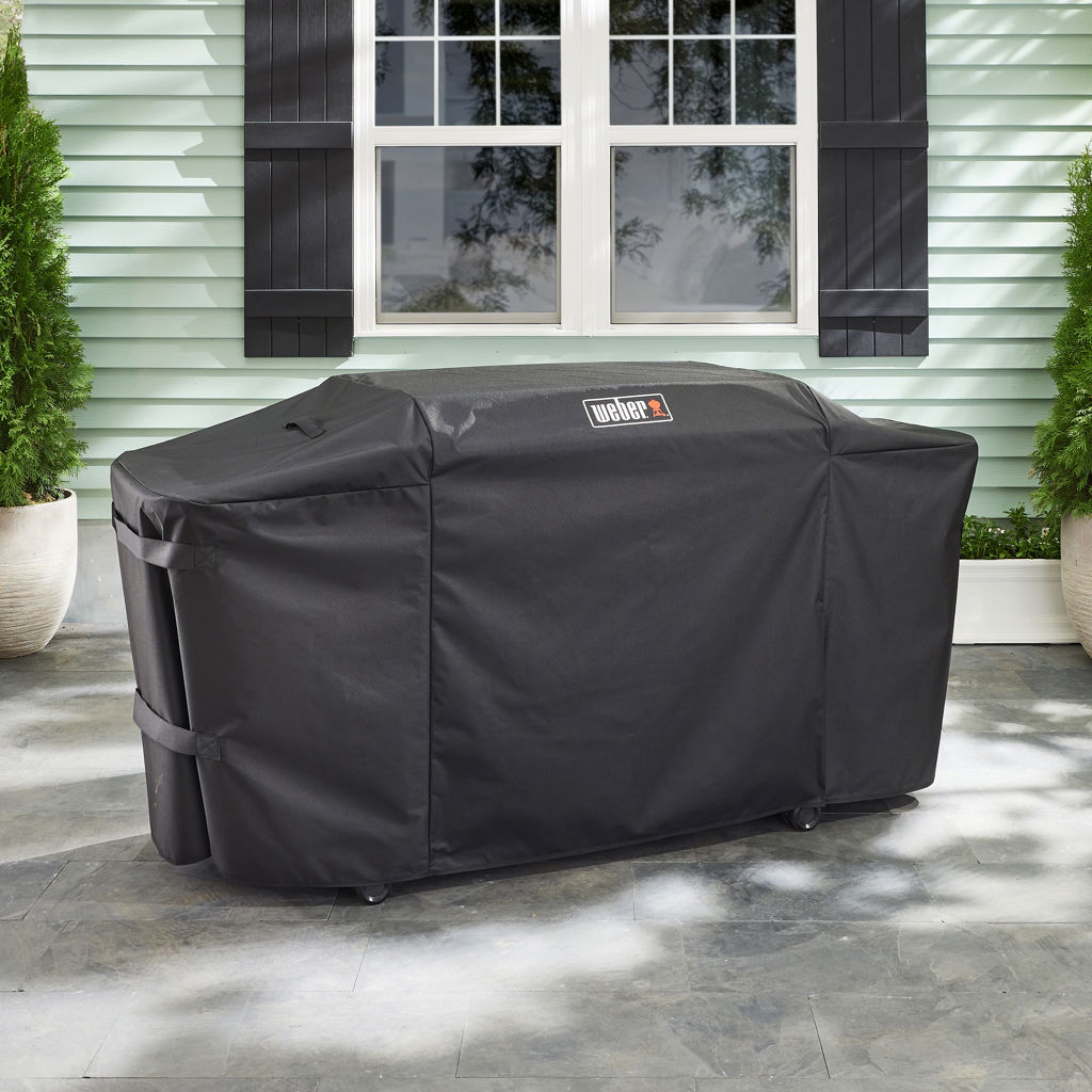 Keep your griddle looking great. This durable Premium Griddle Cover means you don’t have to fear the elements. It’s weather-resistant, covers with the side table up or folded down, and comes with fastening straps to help keep it secure even in the harshest conditions.