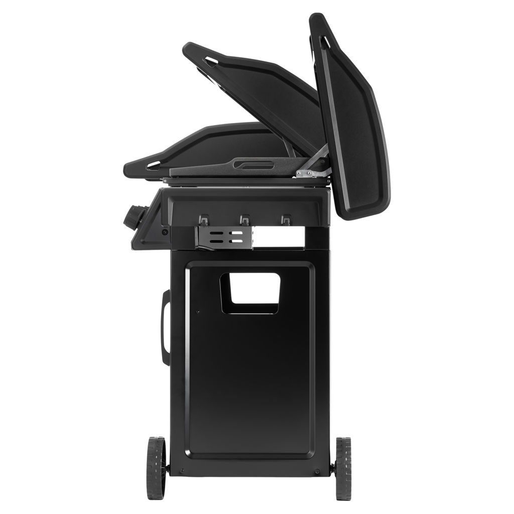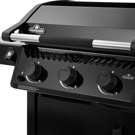 Durable high-gloss black body and controls and a preconditioned, reinforced, rust-resistant steel cooking surface offer all-weather resistance.