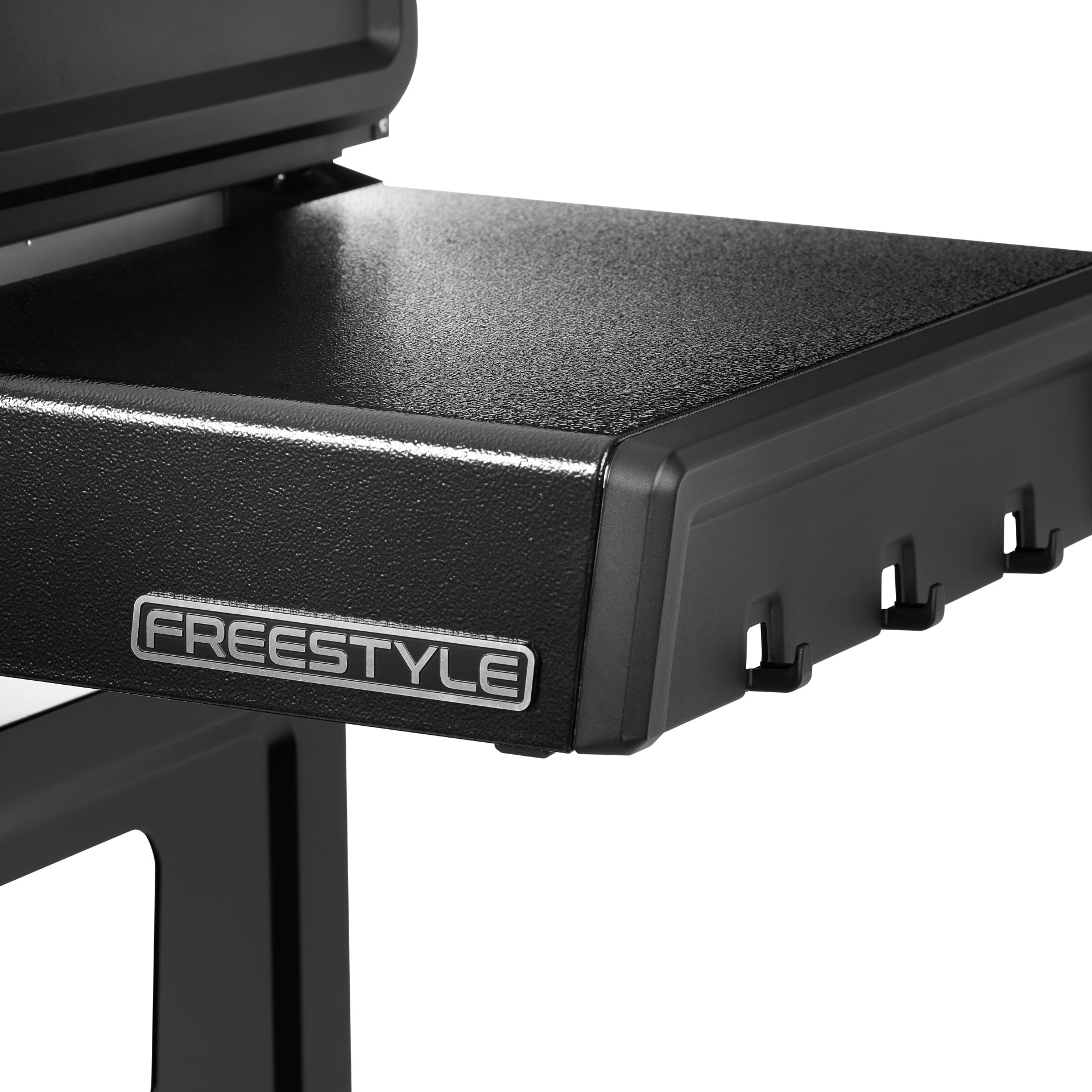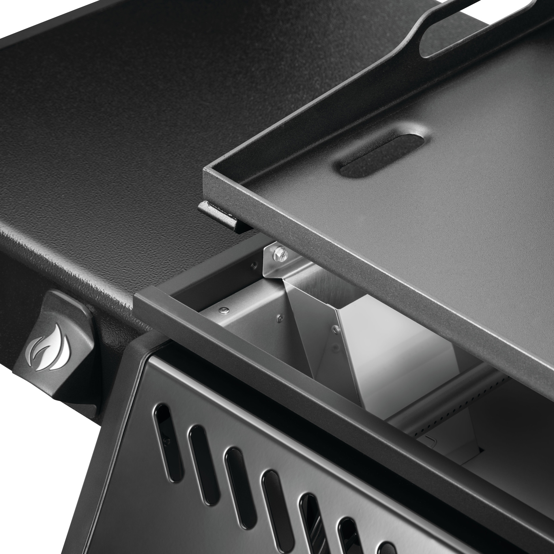 The folding side shelves allow this Griddle to be tucked out of the way for storage, or fit into compact spaces, ideal for balconies, and small patios. Integrated tool hooks keep tools handy