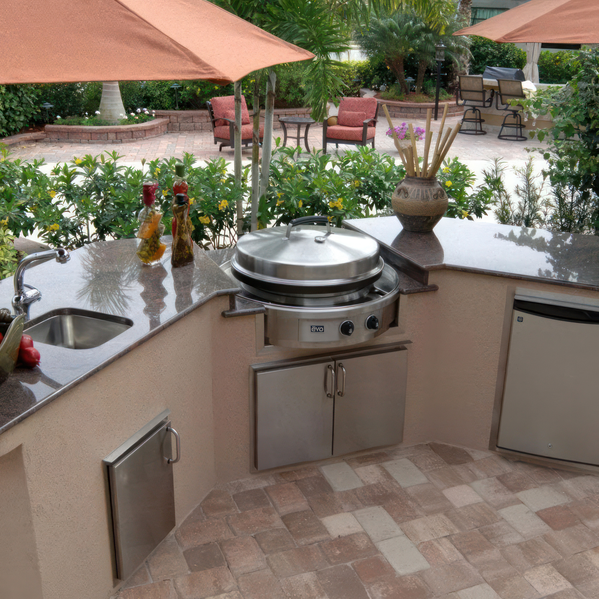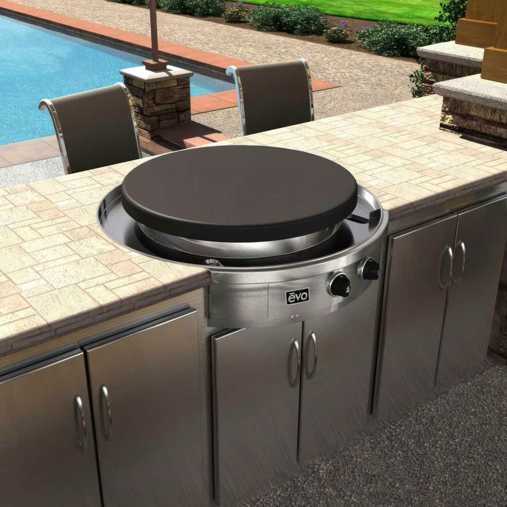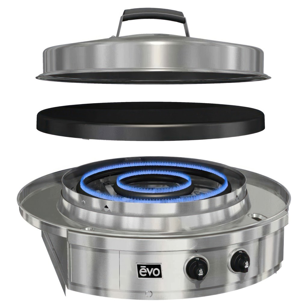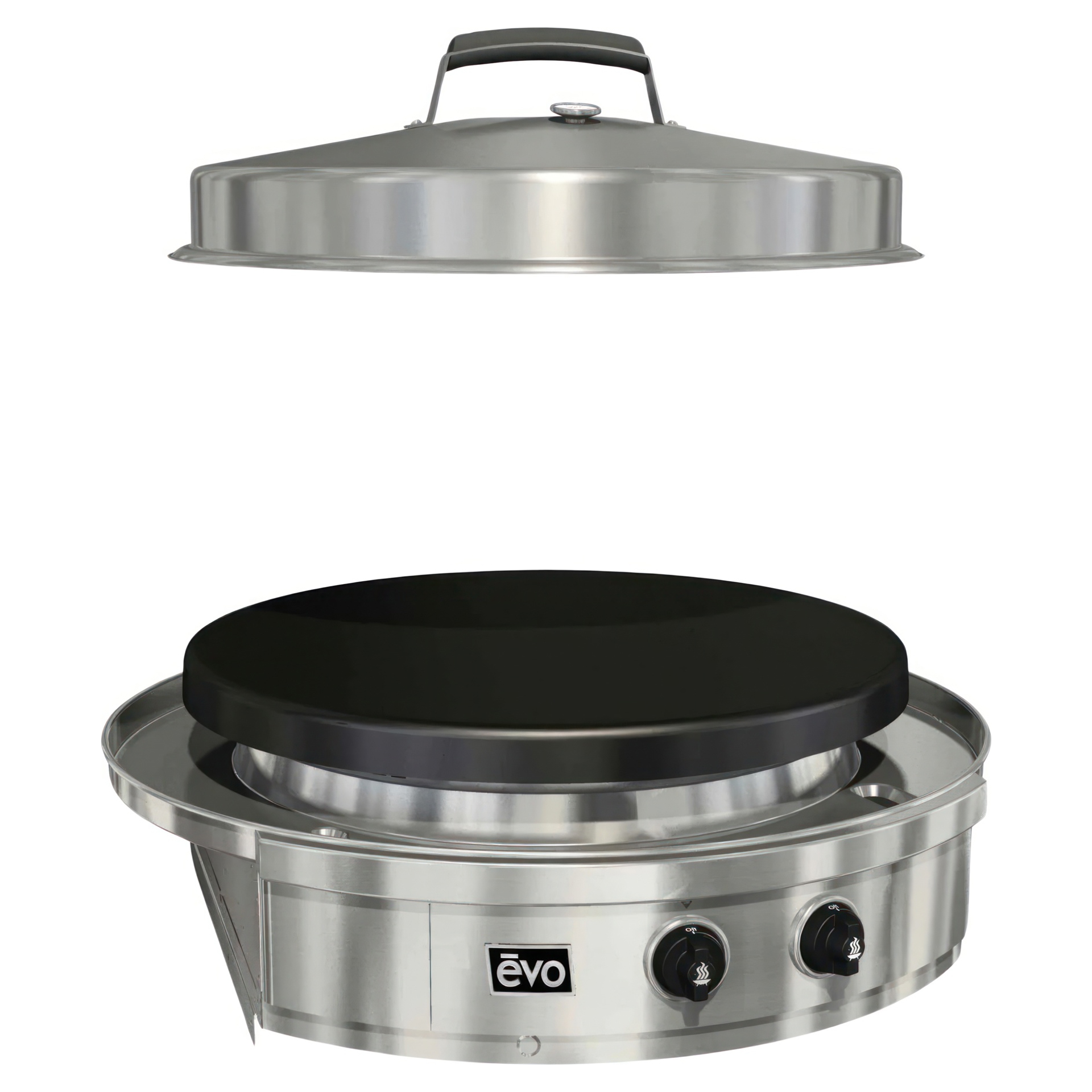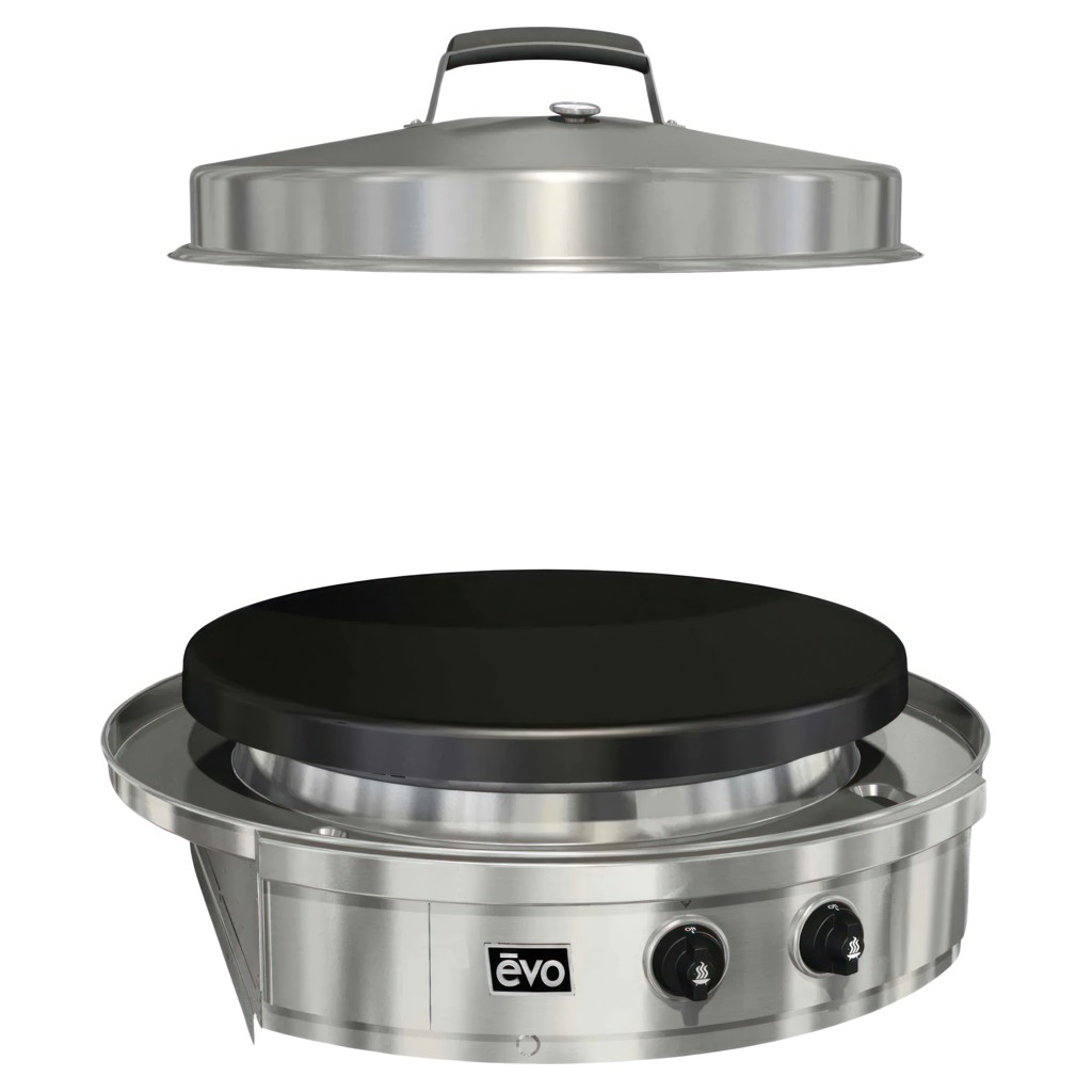 Indirectly, you can boil, braise, poach or fry. Cover the cooking surface with the stainless steel hood to convert the Evo Affinity 30G grill into a patio oven for roasting, steaming, reheating or smoking.
