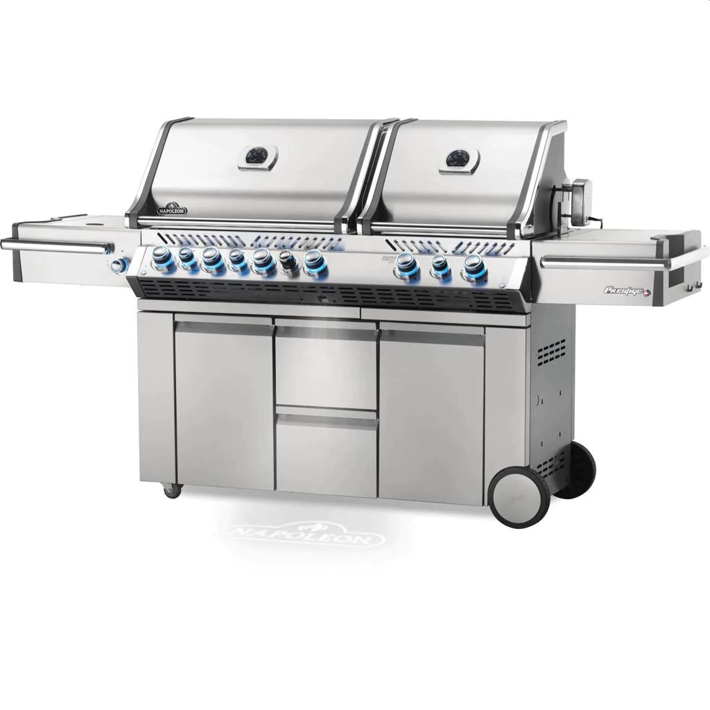 Napoleon's Prestige PRO™ 825 Natural Gas Grill with a Power Side Burner and Infrared Rear and Bottom Burners proves that two heads are better than one. On the outside, a shining stainless steel body provides durability against the elements while chrome details add luxury.