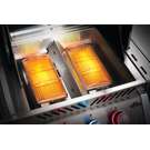The second head features two ceramic infrared burners that reach high heat in seconds, ideal for searing restaurant quality steaks.