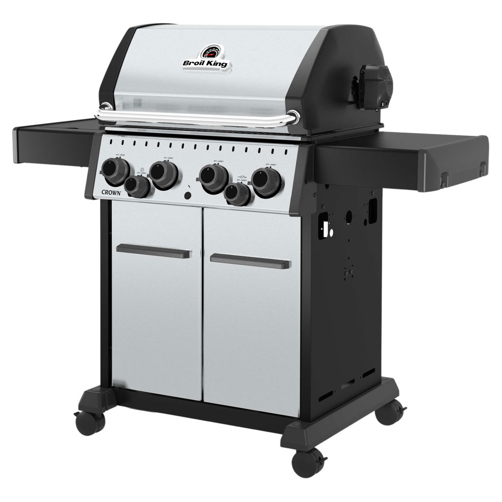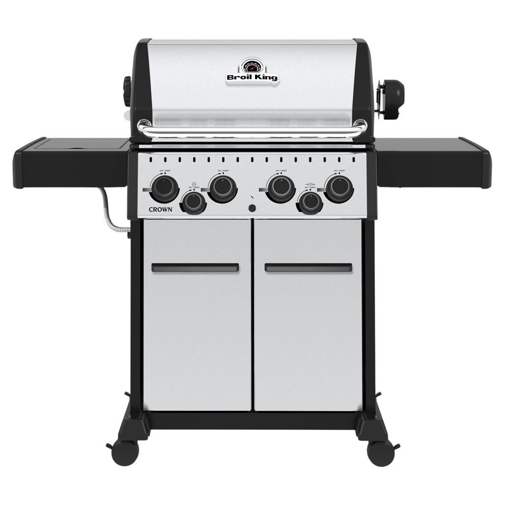 The Broil King® Crown™ 490 Series features 460 sq. in. primary cooking surface and includes a durable cast aluminum oven, 4 stainless steel Dual-Tube™ burners, stainless steel Flav-R-Wave™ cooking system, and electronic ignition.