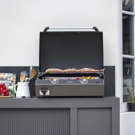 Plancha griiddle with 2 burners, the Plancha Bergerac 2400 with its cargo grey base easily finds its place in your yard. High performance and sturdy, it allows for easy cooking on a daily base.