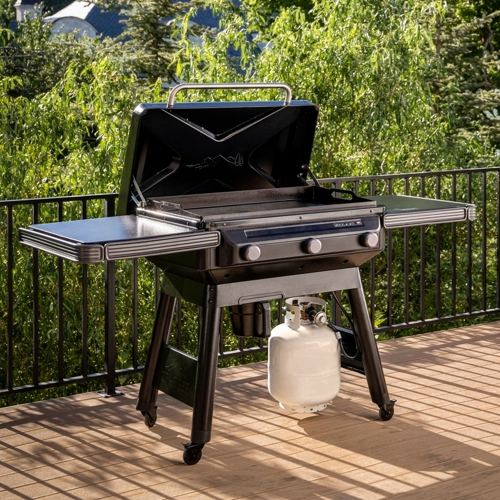 FlameLock™ construction keeps heat where it should be for more even cooking while using 28% less propane than standard patio griddles.
