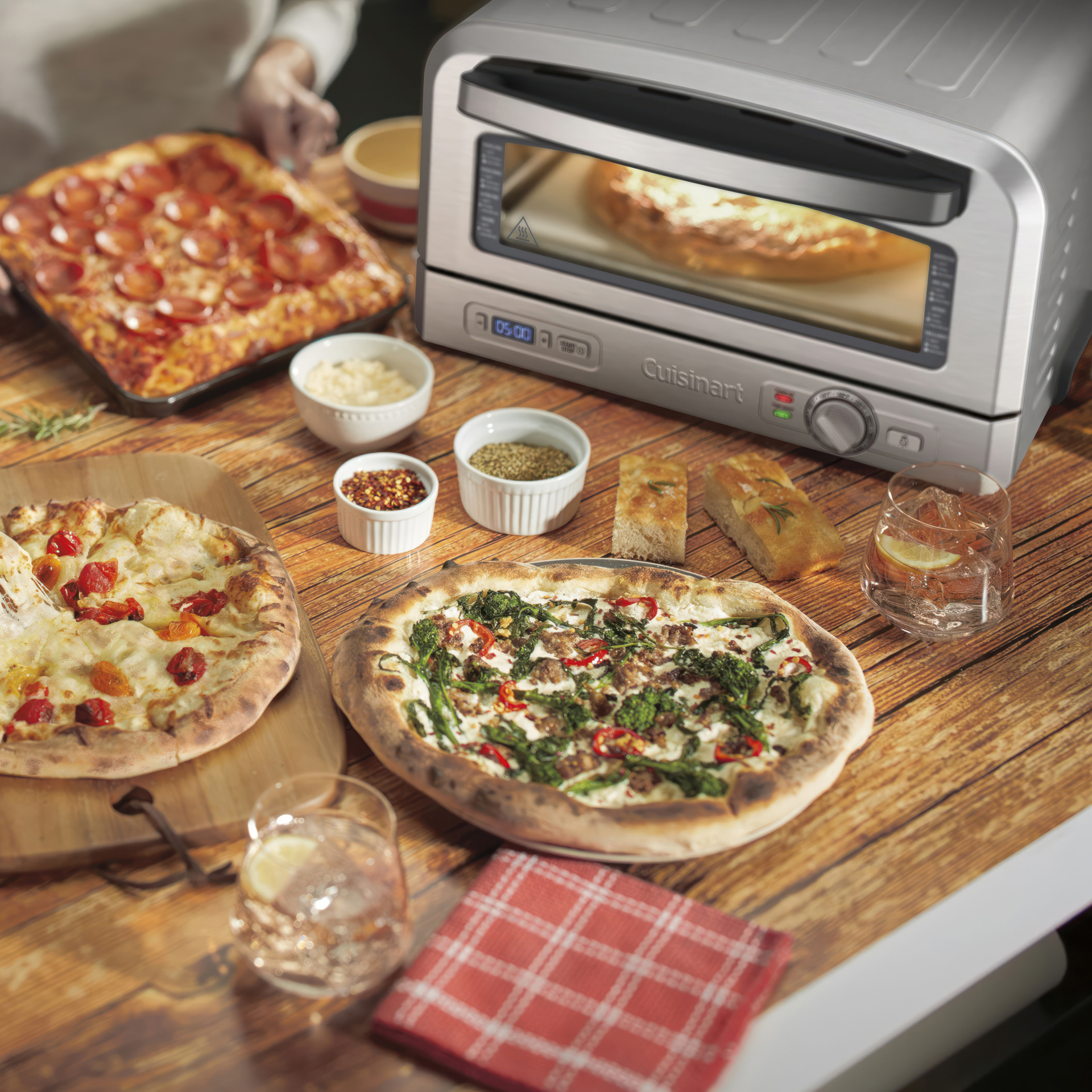 • Versatile pizza oven bakes an artisanal pizza in minutes.