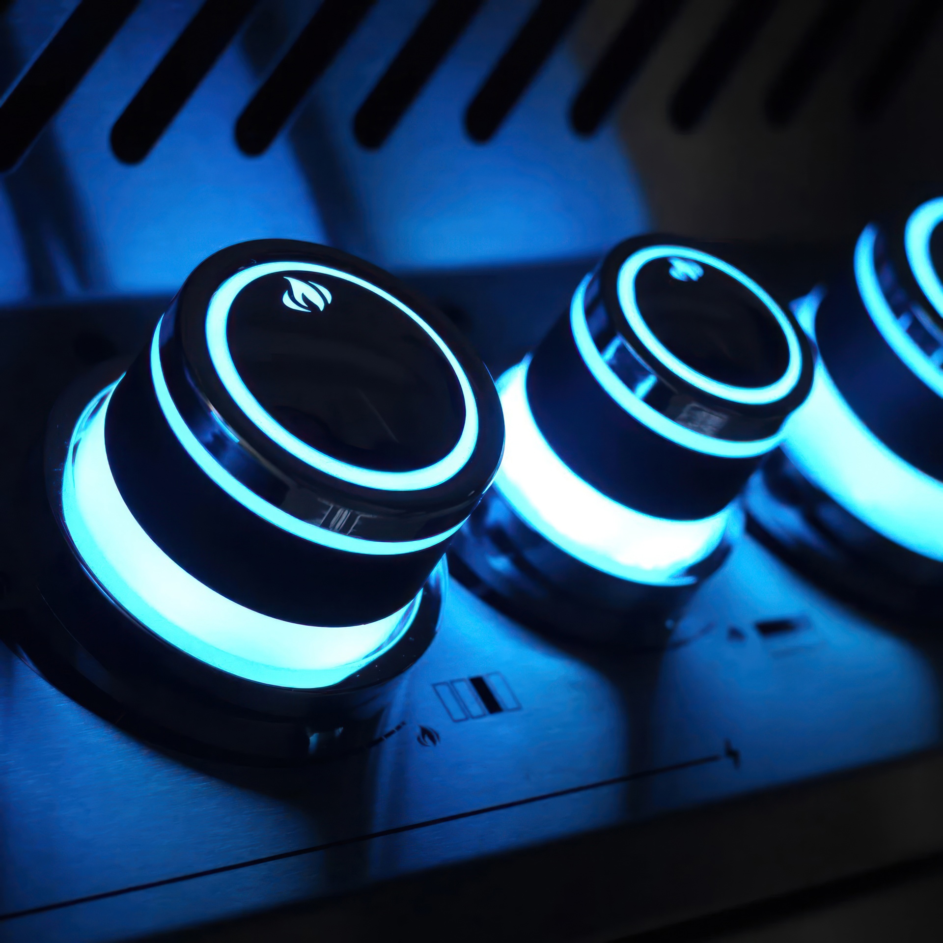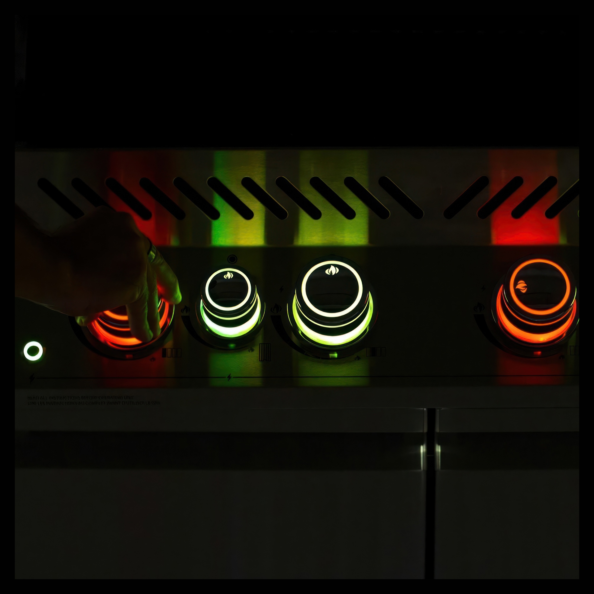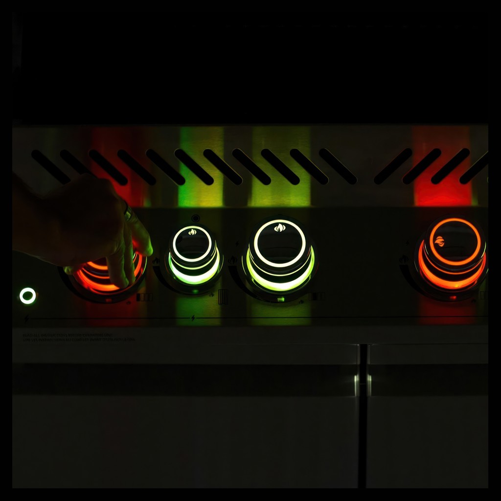 NIGHT LIGHT control knobs with LEDs in nearly unlimited colors make it easy to cook in the evening; they also light up red when the gas is on for added safety.