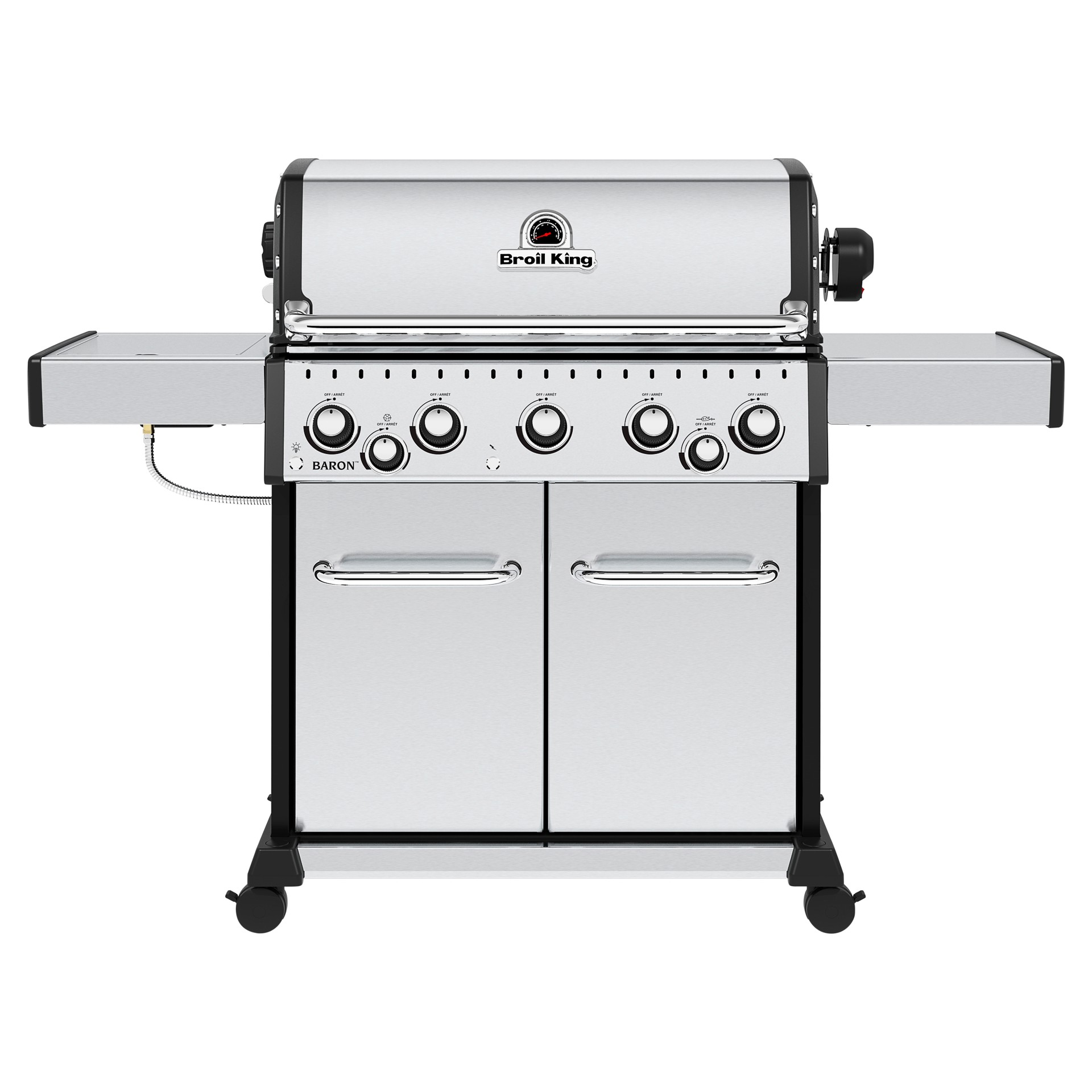Grill enthusiasts will appreciate the endless possibilities offered by the Broil King Baron S 590 PRO IR, combining 5 stainless steel Dual-Tube 45,000 BTU burners, a 10,000 BTU infrared side burner for seared meats in seconds, a 15,000 BTU rotisserie burner, fold-down side shelves and an incredibly spacious 820"² cooking surface. Sturdy 8 mm thick stainless steel cooking grids are durable and resistant to the elements, not to mention that they retain heat from the burners, allowing for more efficient cooking.
