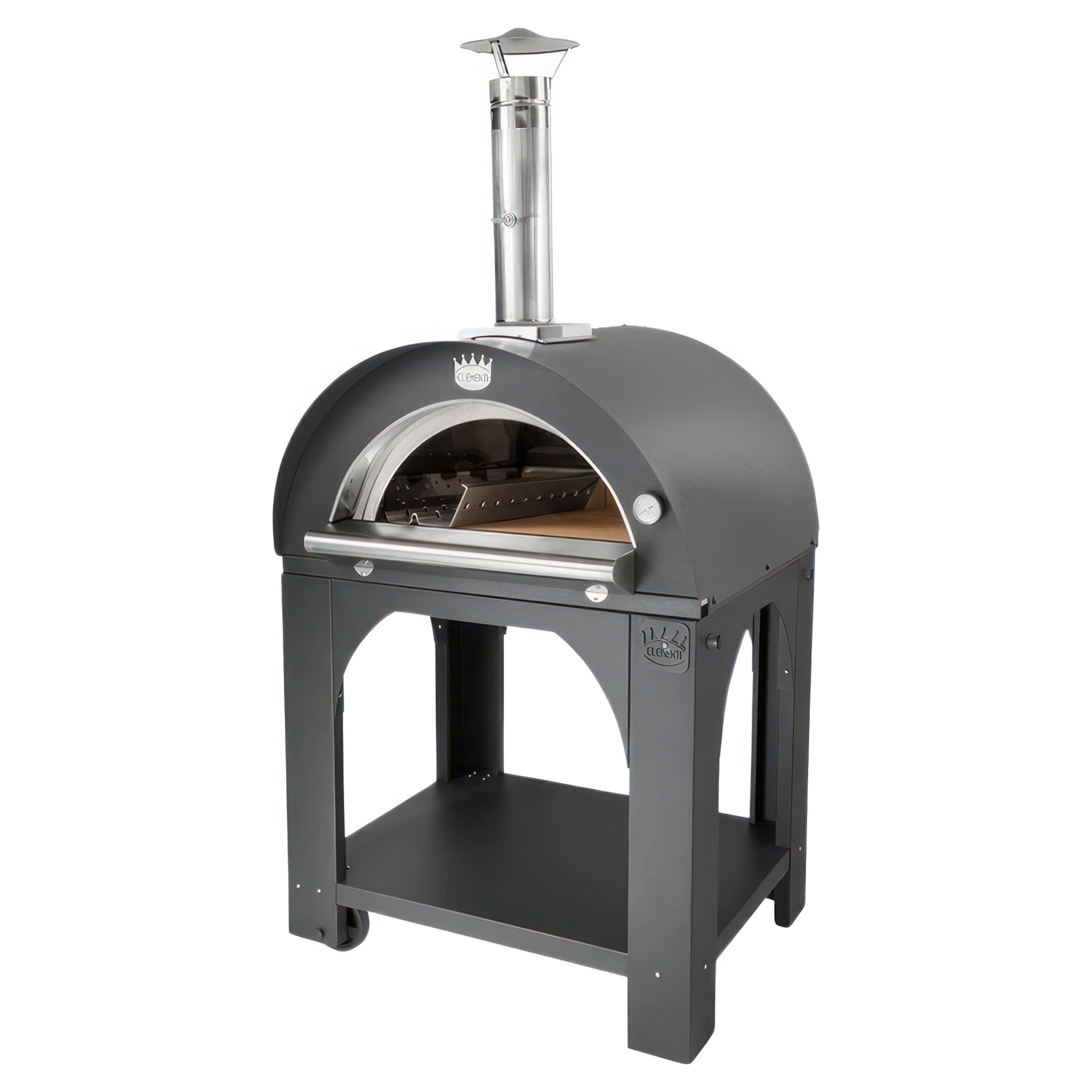 The cooking area is made of firebrick that retains heat from the fire to give a perfectly crispy pizza base. The oven has a thermometer, a damper system on the chimney for temperature control, a stainless steel door, and a unique Air Plus system, which allows an even flow of air into the fire.
