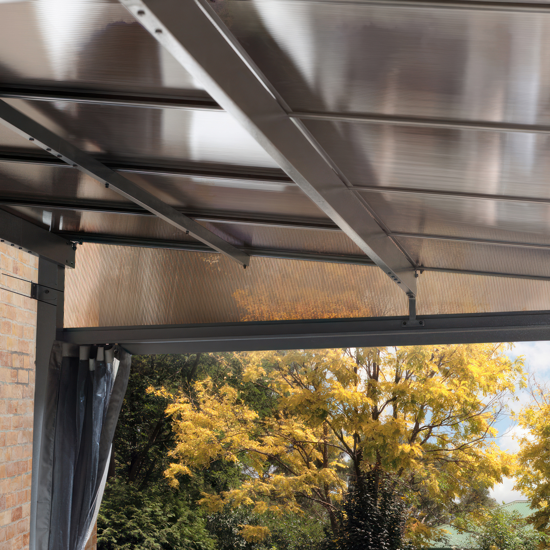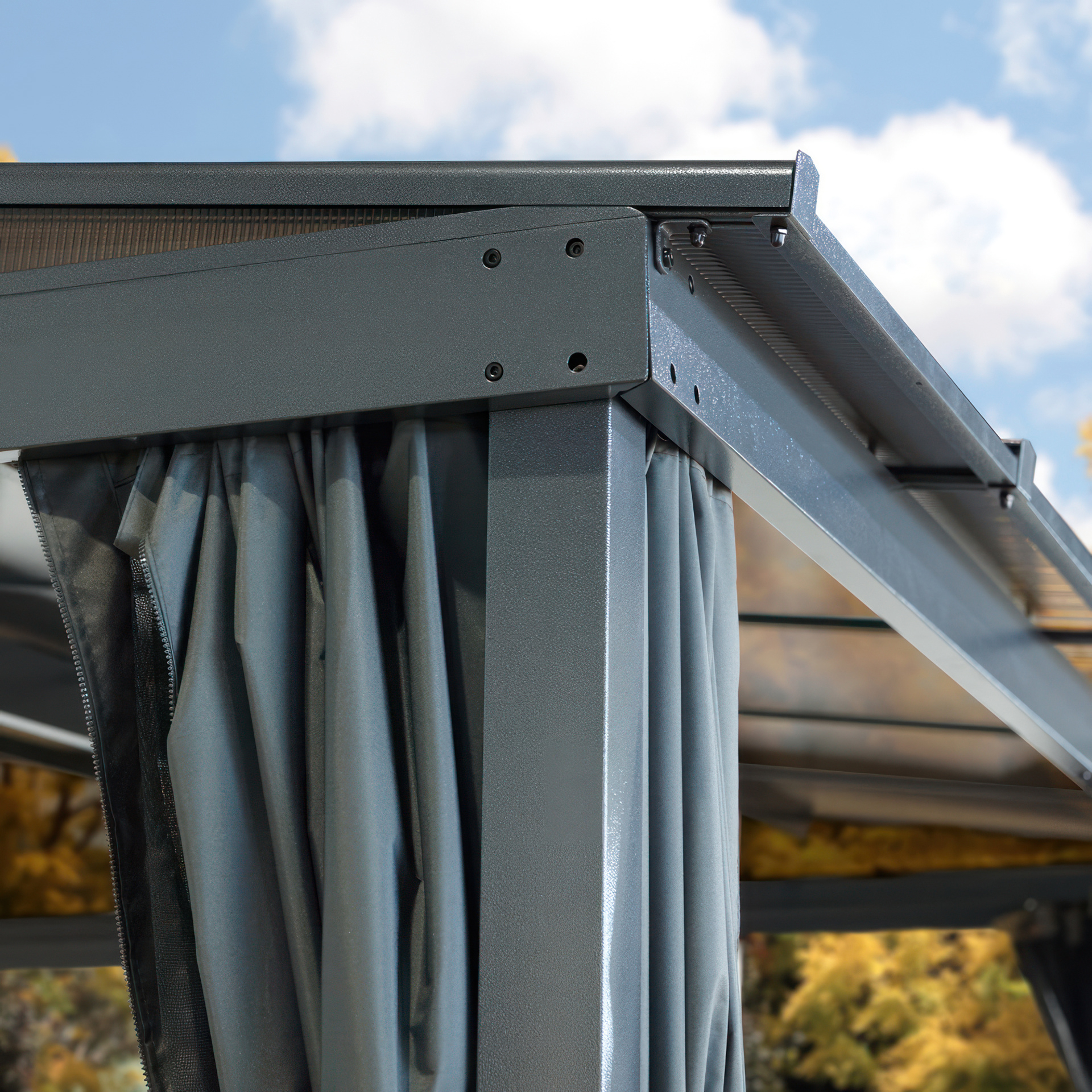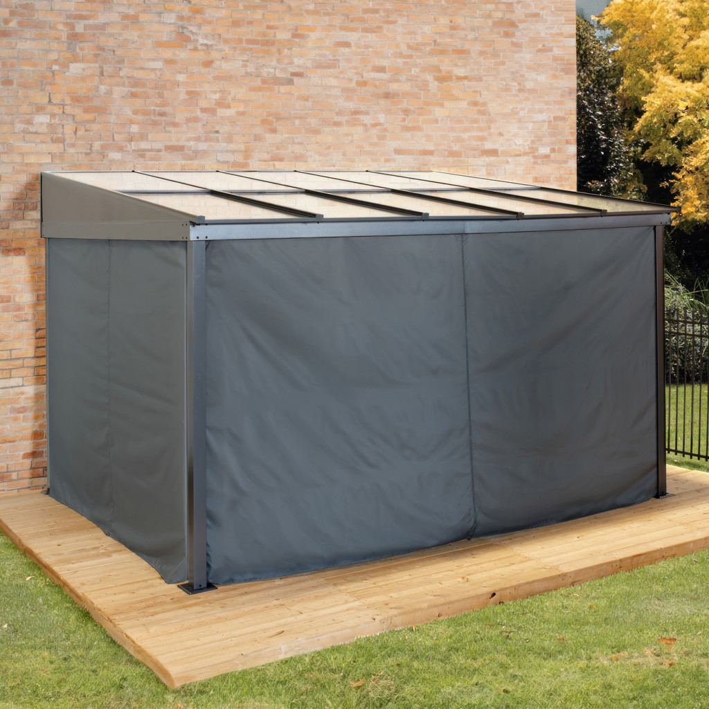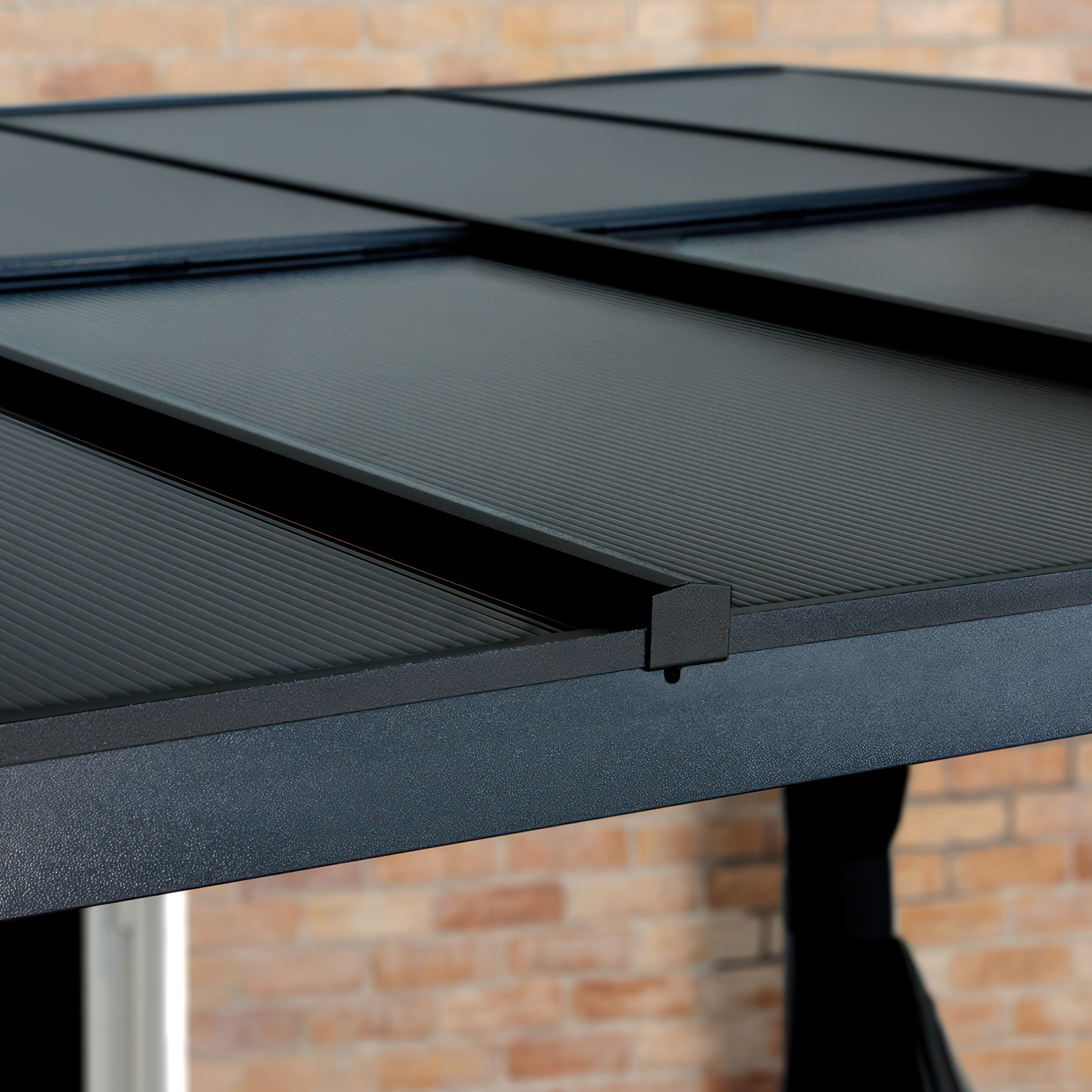 The durable aluminum frame and polycarbonate roof panels can be left outside in any season.
