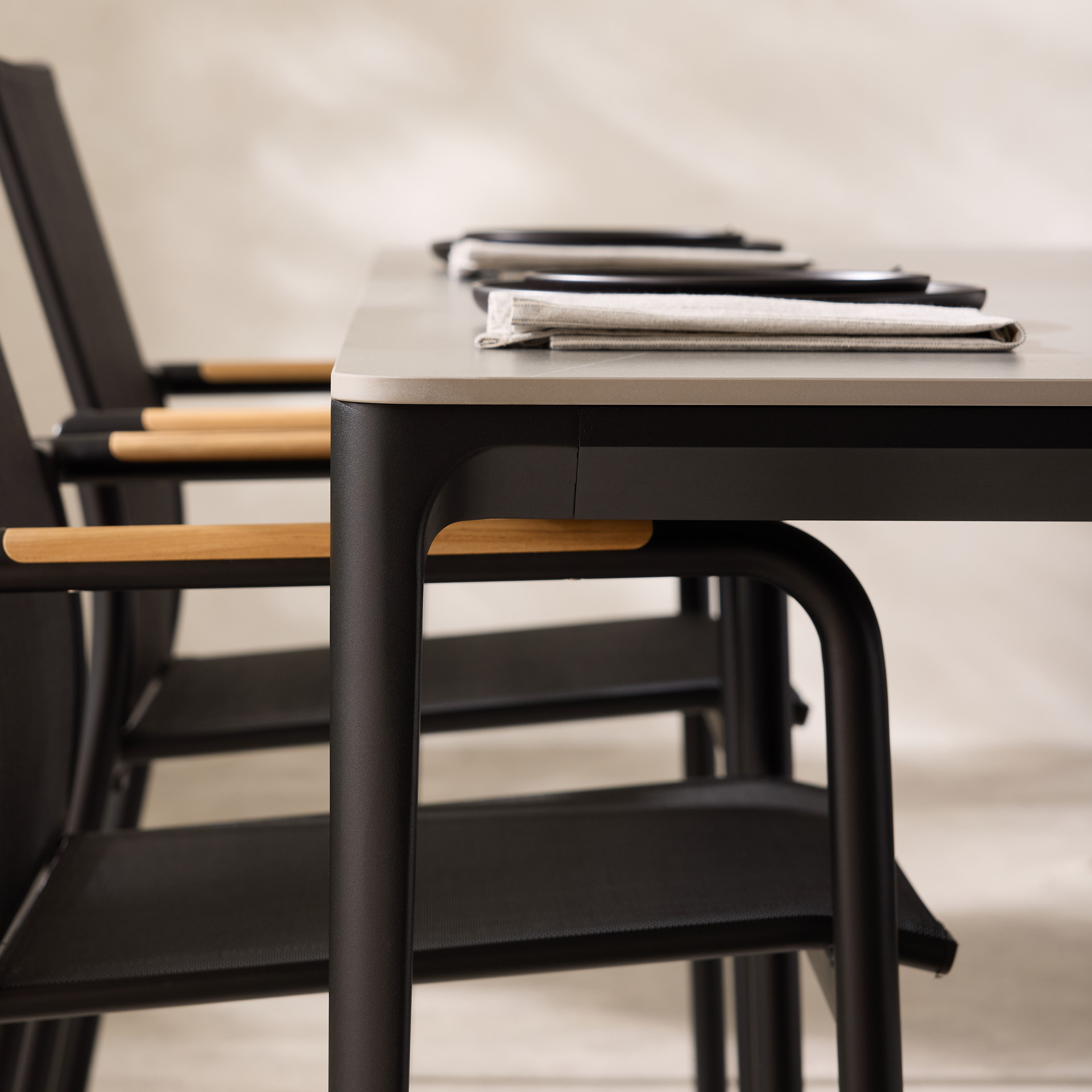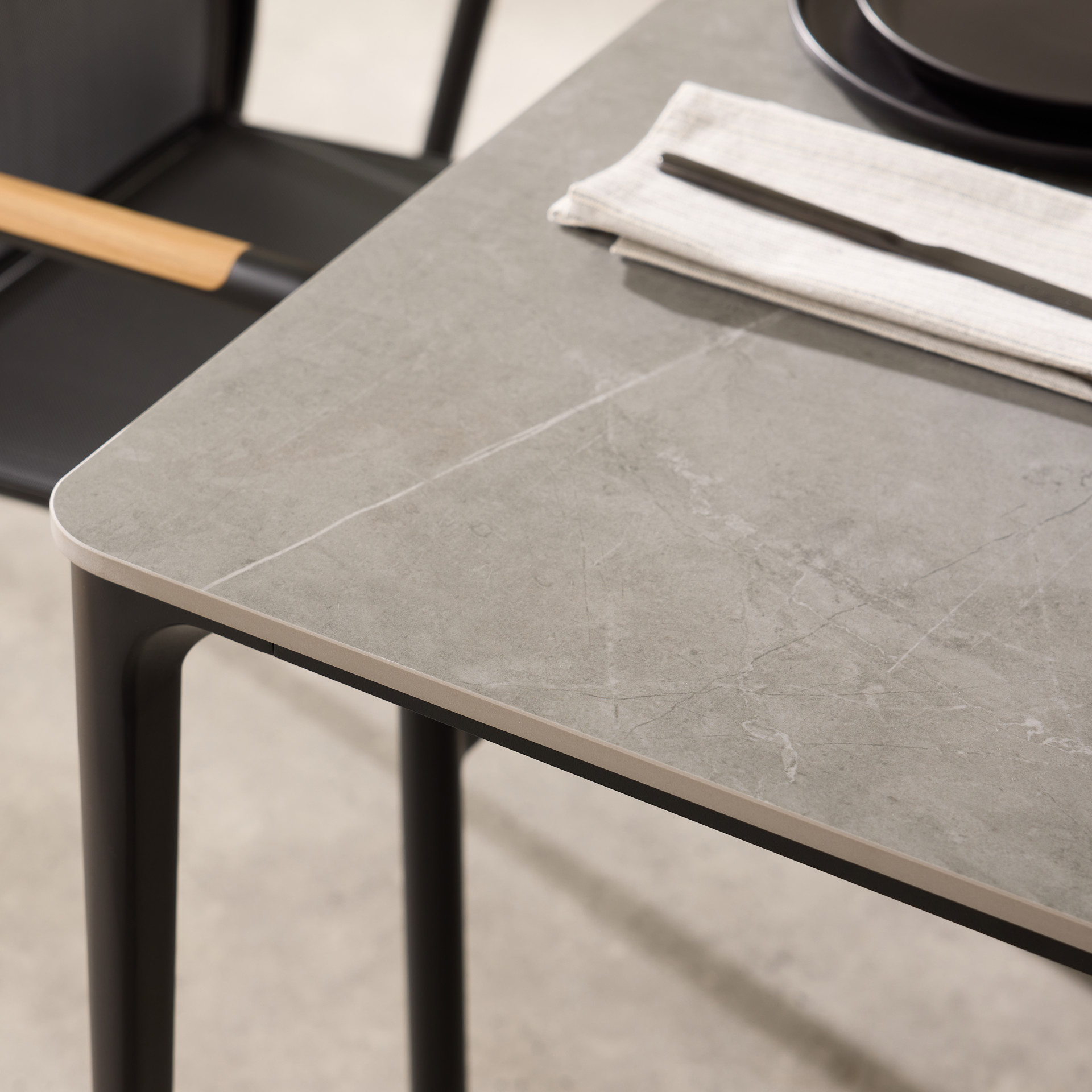 • Aluminum frame with sintered stone top.